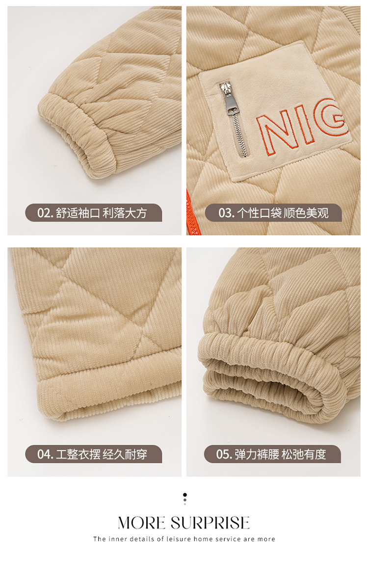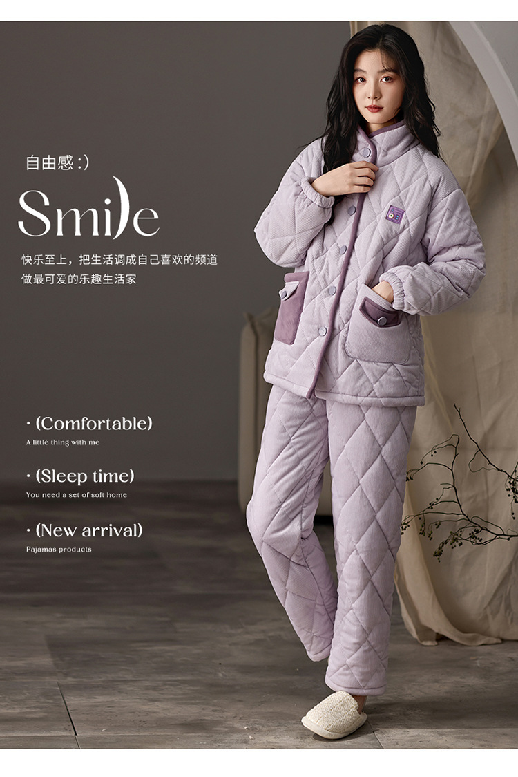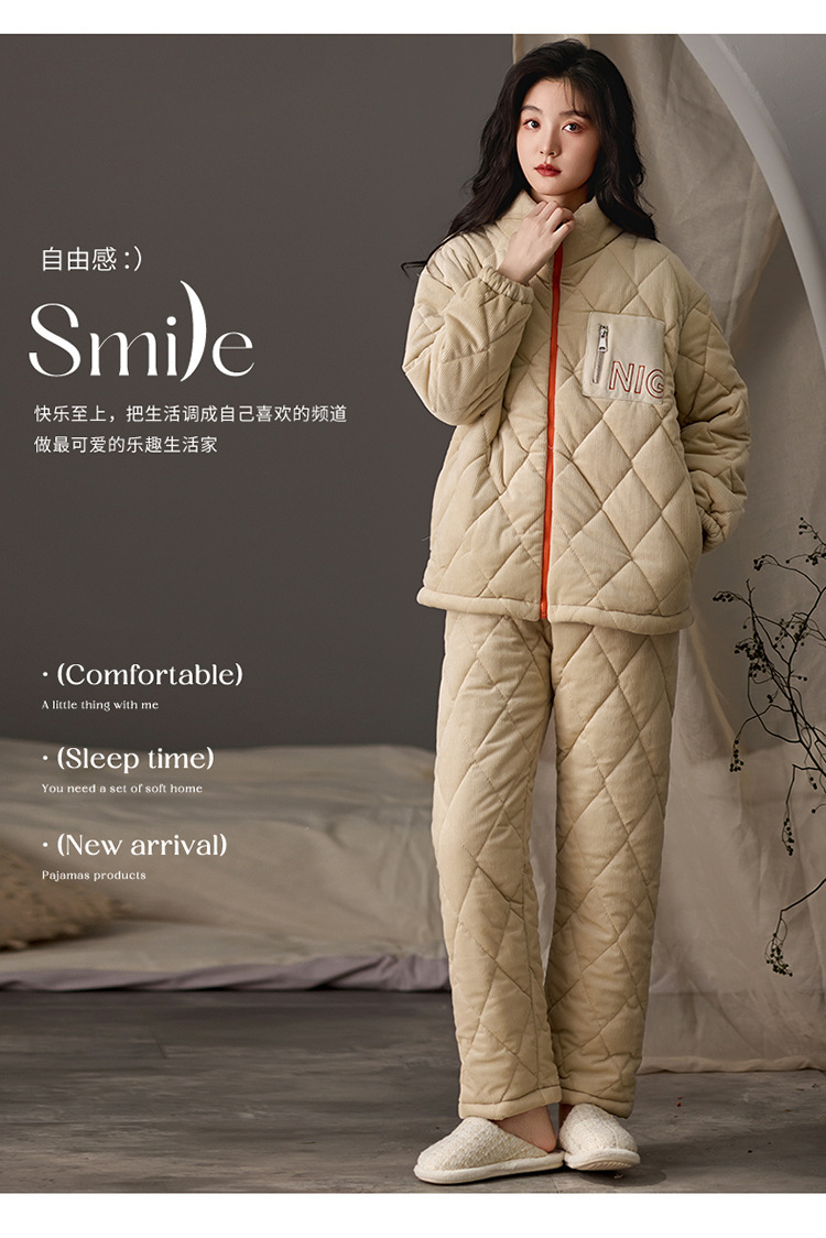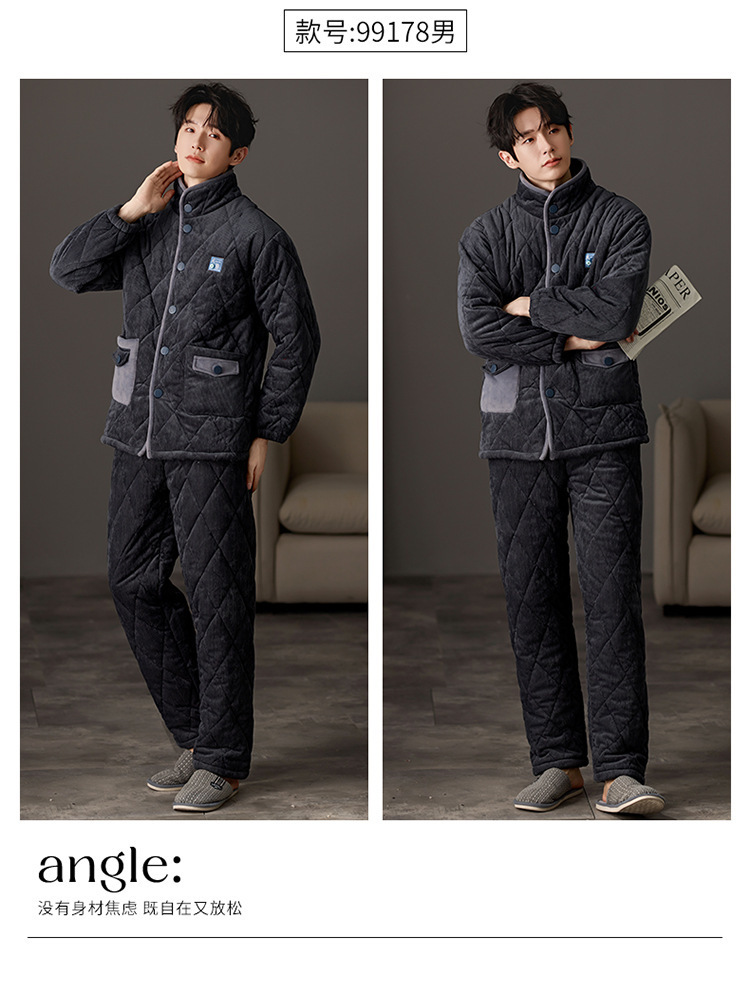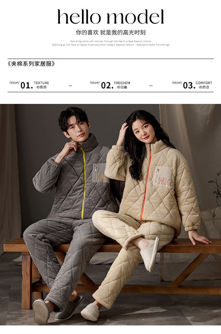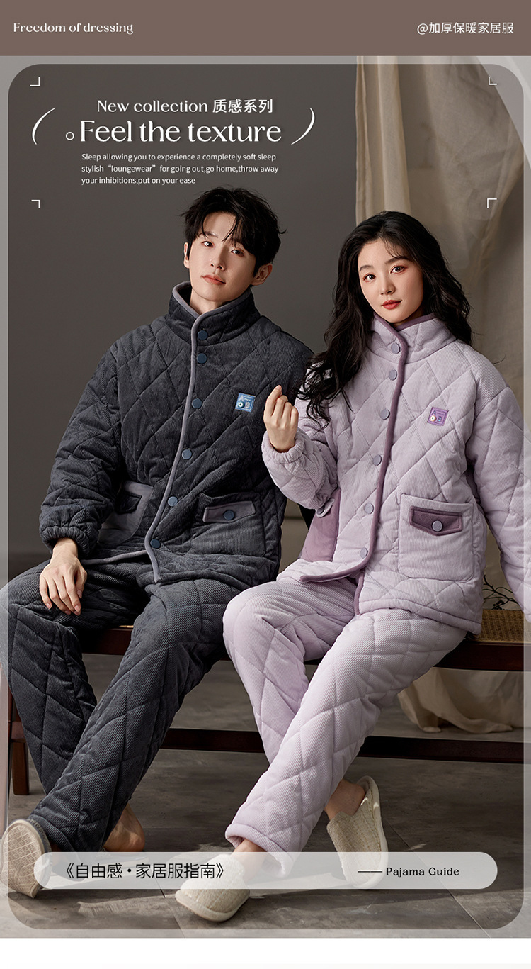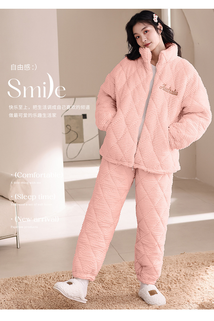 겨울 커플 잠옷 여성용 산호 양털 카디건 3 층 두꺼운 기모 플란넬 코튼 패딩 재킷