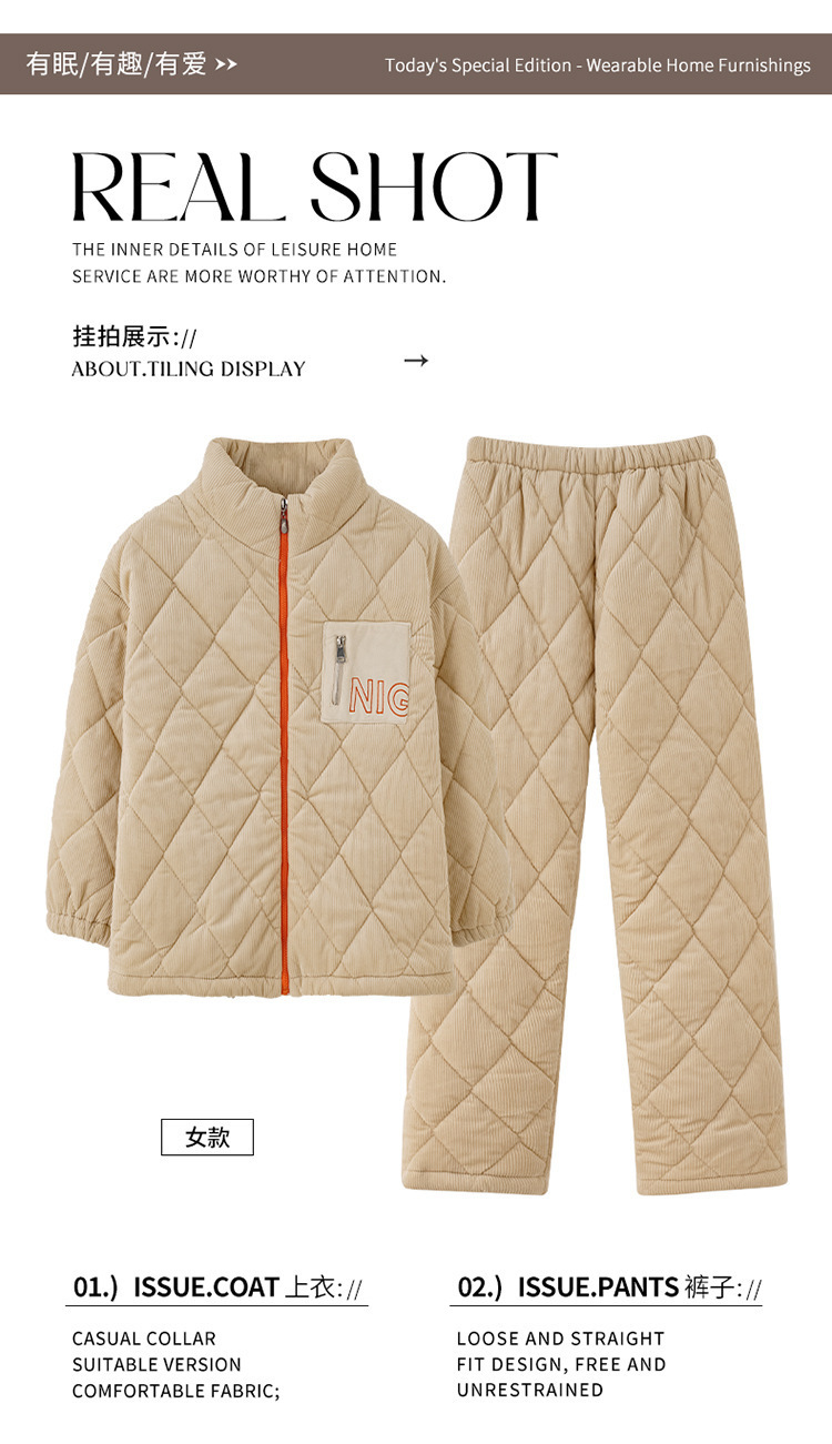 겨울 커플 잠옷 여성용 산호 양털 카디건 3 층 두꺼운 기모 플란넬 코튼 패딩 재킷스토어 가기