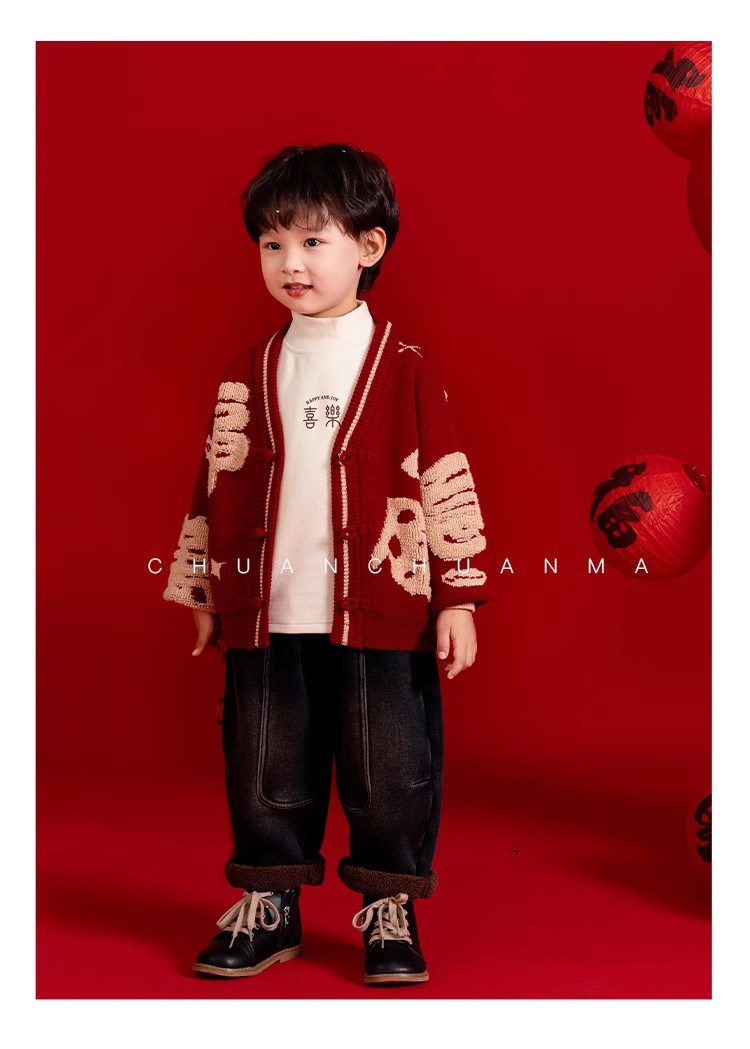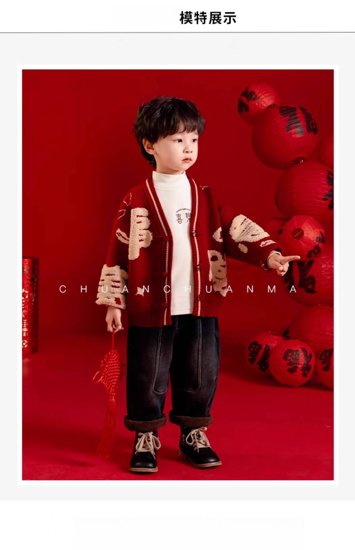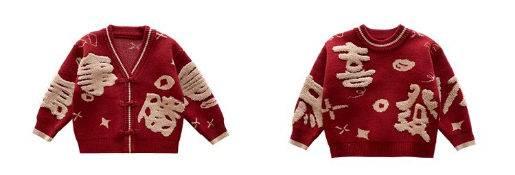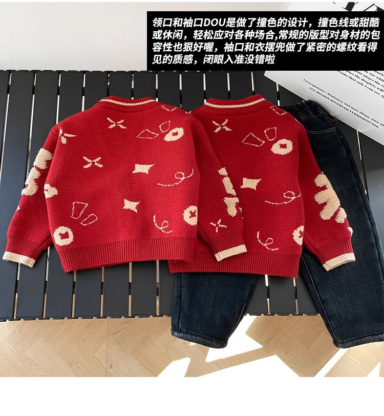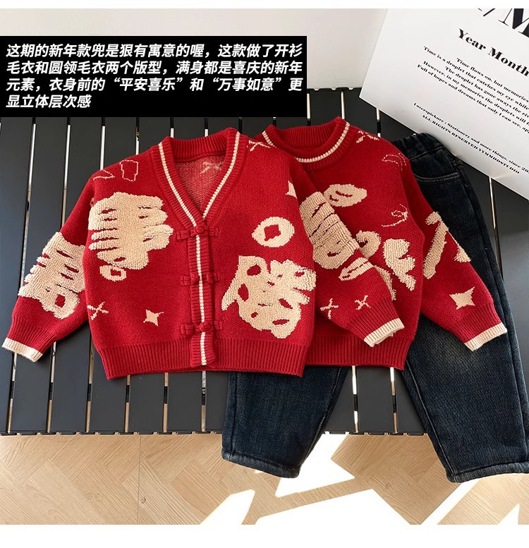 Tongxingyuan 어린이 새해 빨간 스웨터 소년 니트 스웨터 겨울 여자 카디건 아기 신년 옷 어린이 의류 조수