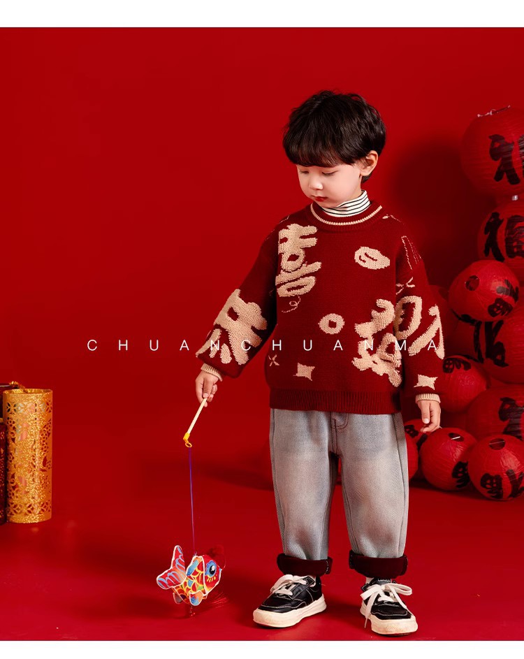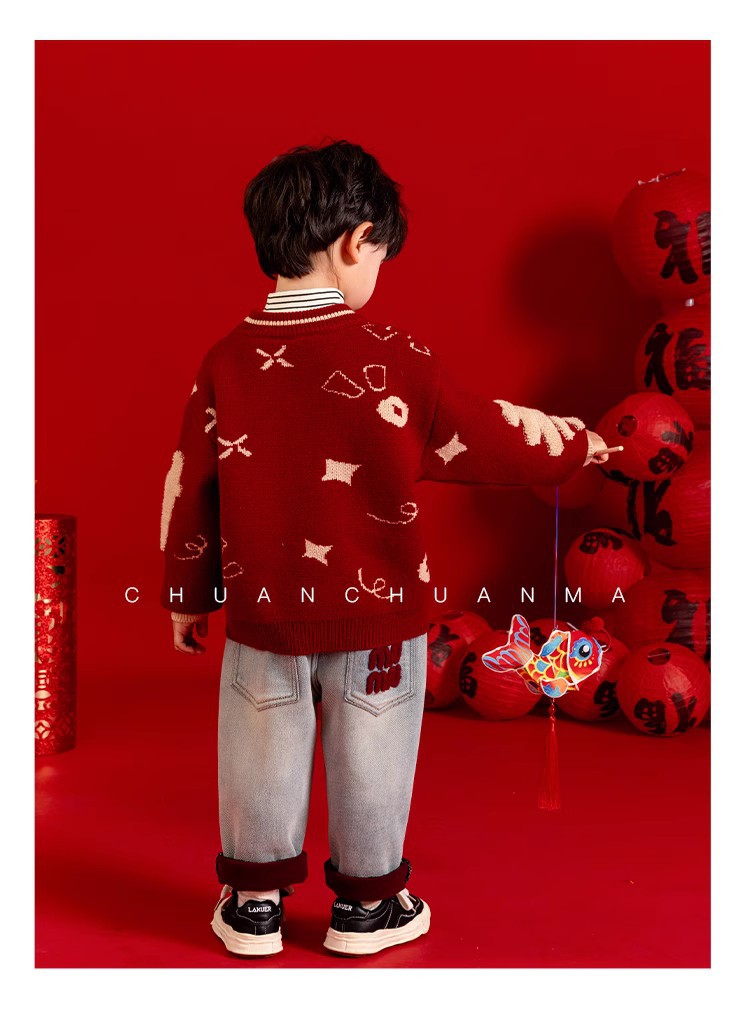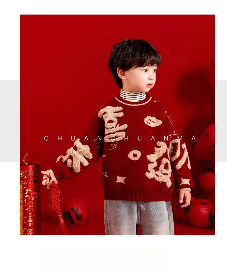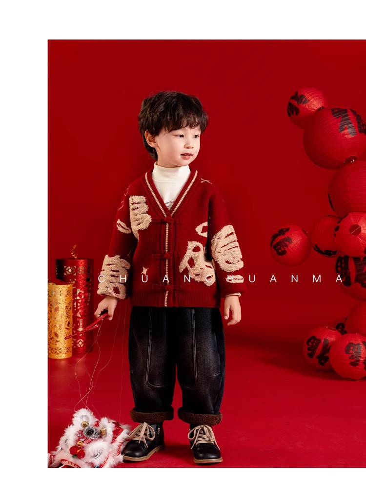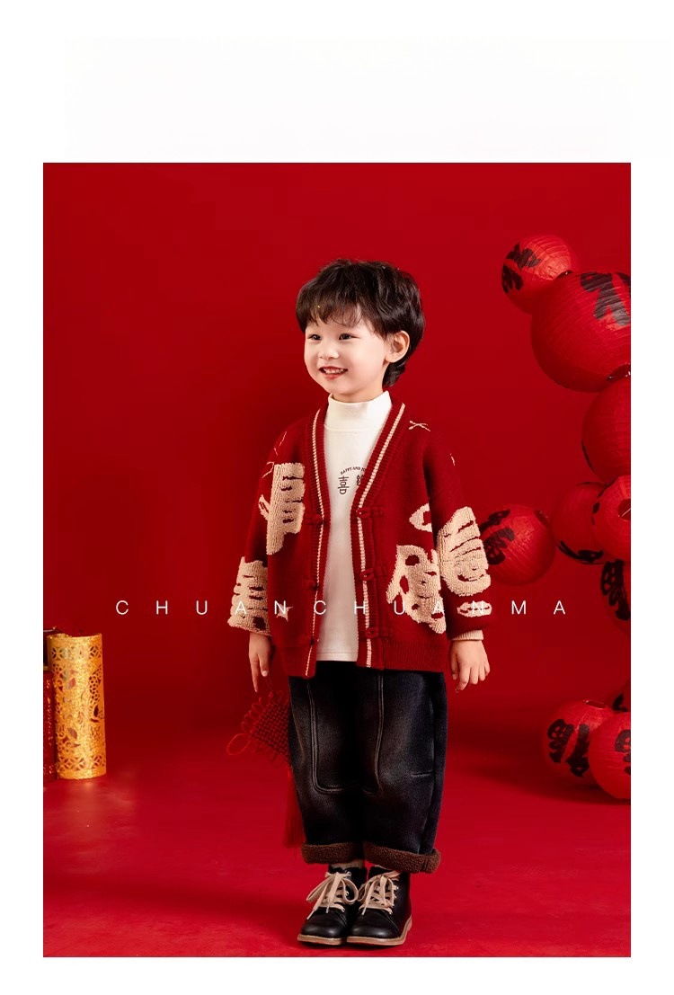 Tongxingyuan 어린이 새해 빨간 스웨터 소년 니트 스웨터 겨울 여자 카디건 아기 신년 옷 어린이 의류 조수