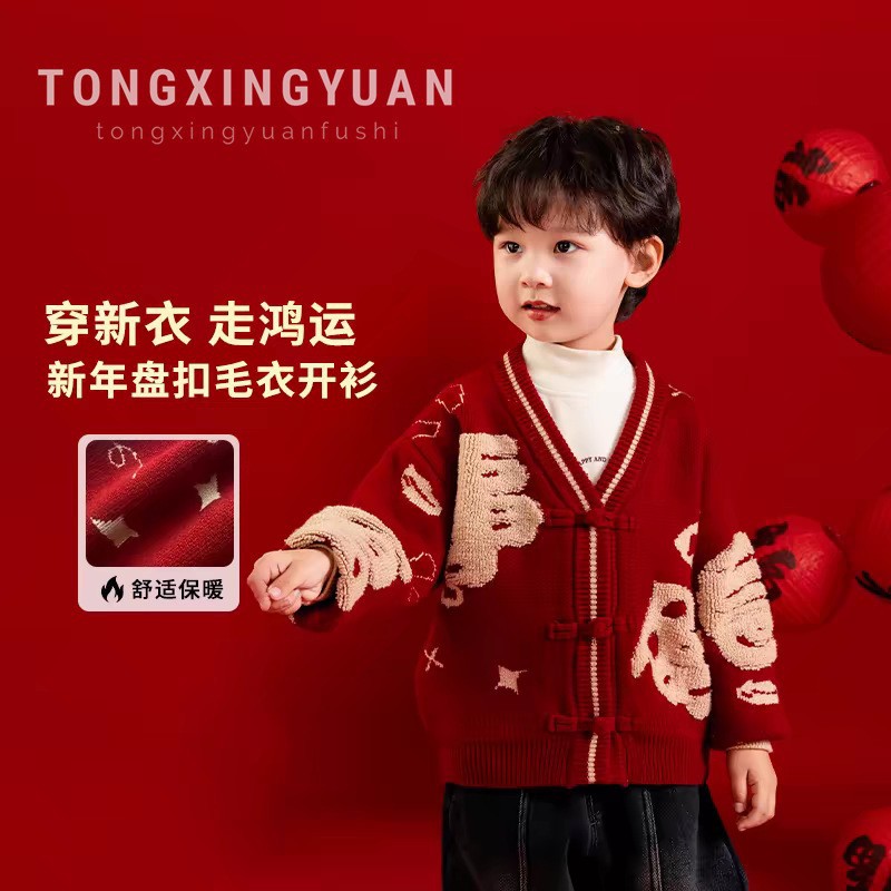 Tongxingyuan 어린이 새해 빨간 스웨터 소년 니트 스웨터 겨울 여자 카디건 아기 신년 옷 어린이 의류 조수스토어 가기