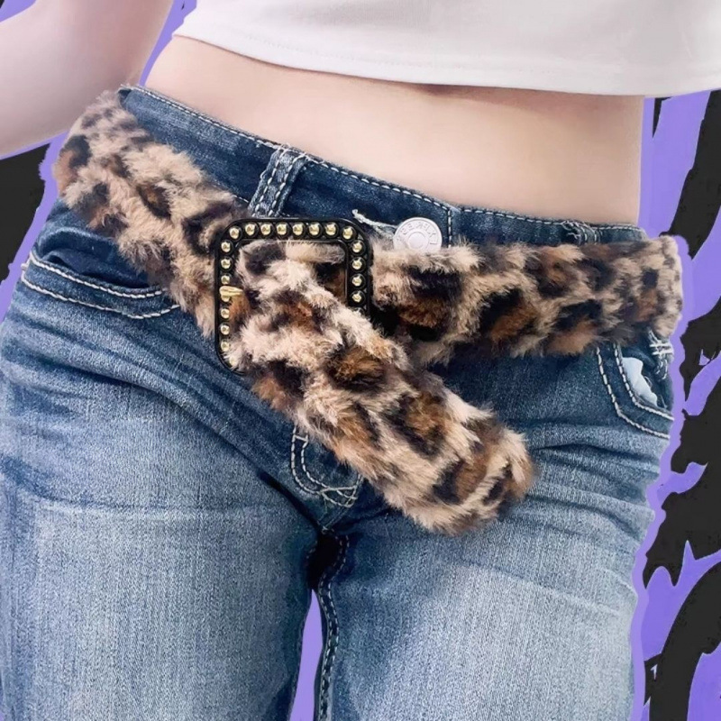 • 브라운 레오파드 프린트 플러시 벨트 - 모피의 질감은 배치로 인해 약간 다릅니다.