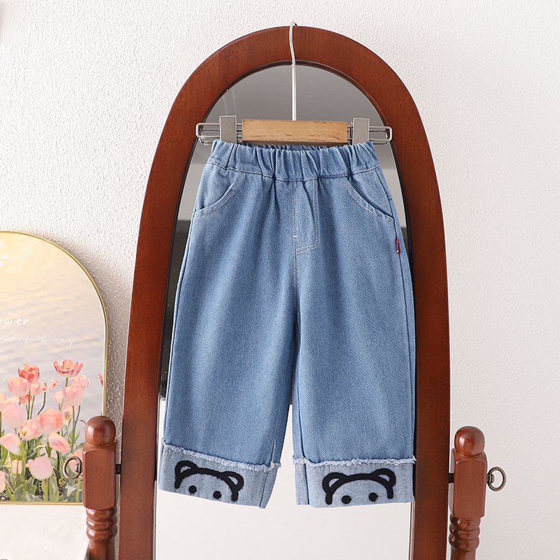 소녀의 봄과 가을 청바지 2024 아기 소녀를위한 새로운 도착 올 매치 봄과 가을 바지 봄과 가을 바지스토어 가기