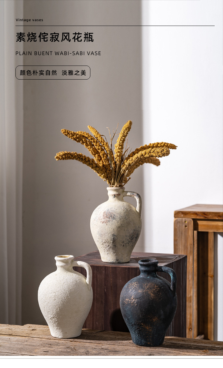레트로 말린 꽃 꽃병 데스크탑 거실 수경 연구 호텔 홈 장식 세라믹 꽃병 꽃 냄비 수출 국경스토어 가기