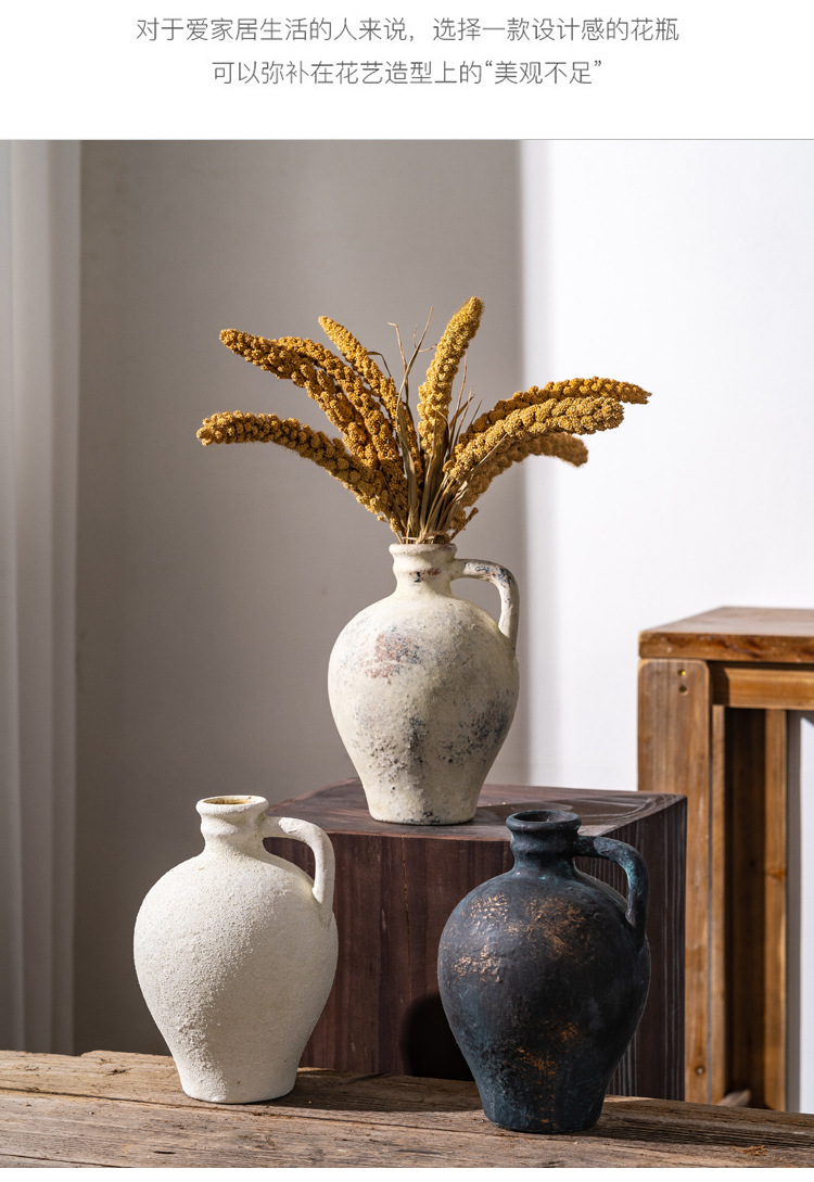 레트로 말린 꽃 꽃병 데스크탑 거실 수경 연구 호텔 홈 장식 세라믹 꽃병 꽃 냄비 수출 국경