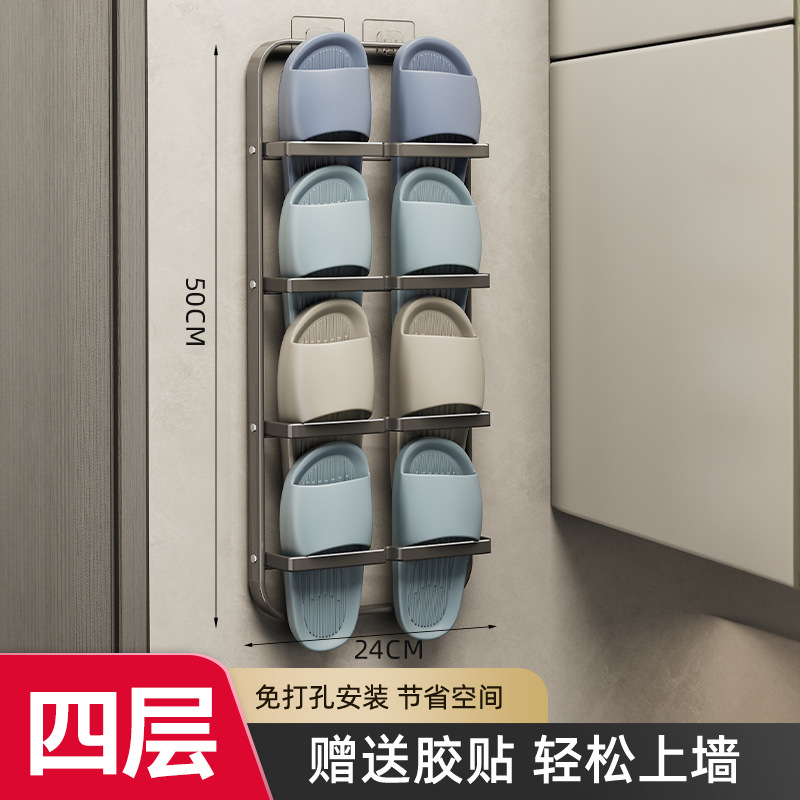 욕실 슬리퍼 랙 펀치 프리 화장실 보관 랙 신발 보관 벽 교수형 도어 후면 화장실 다층 배수 랙