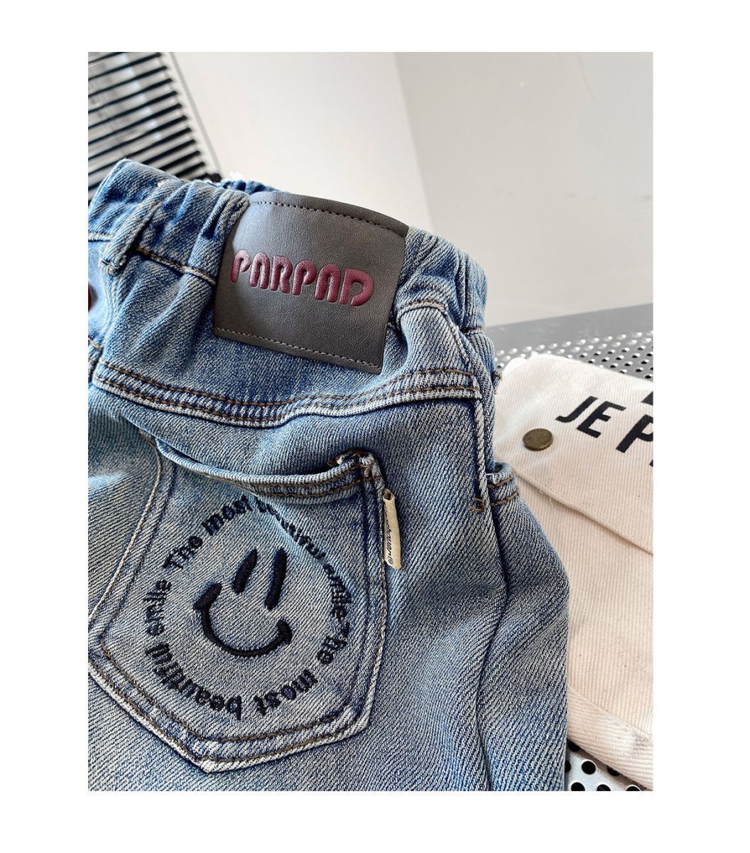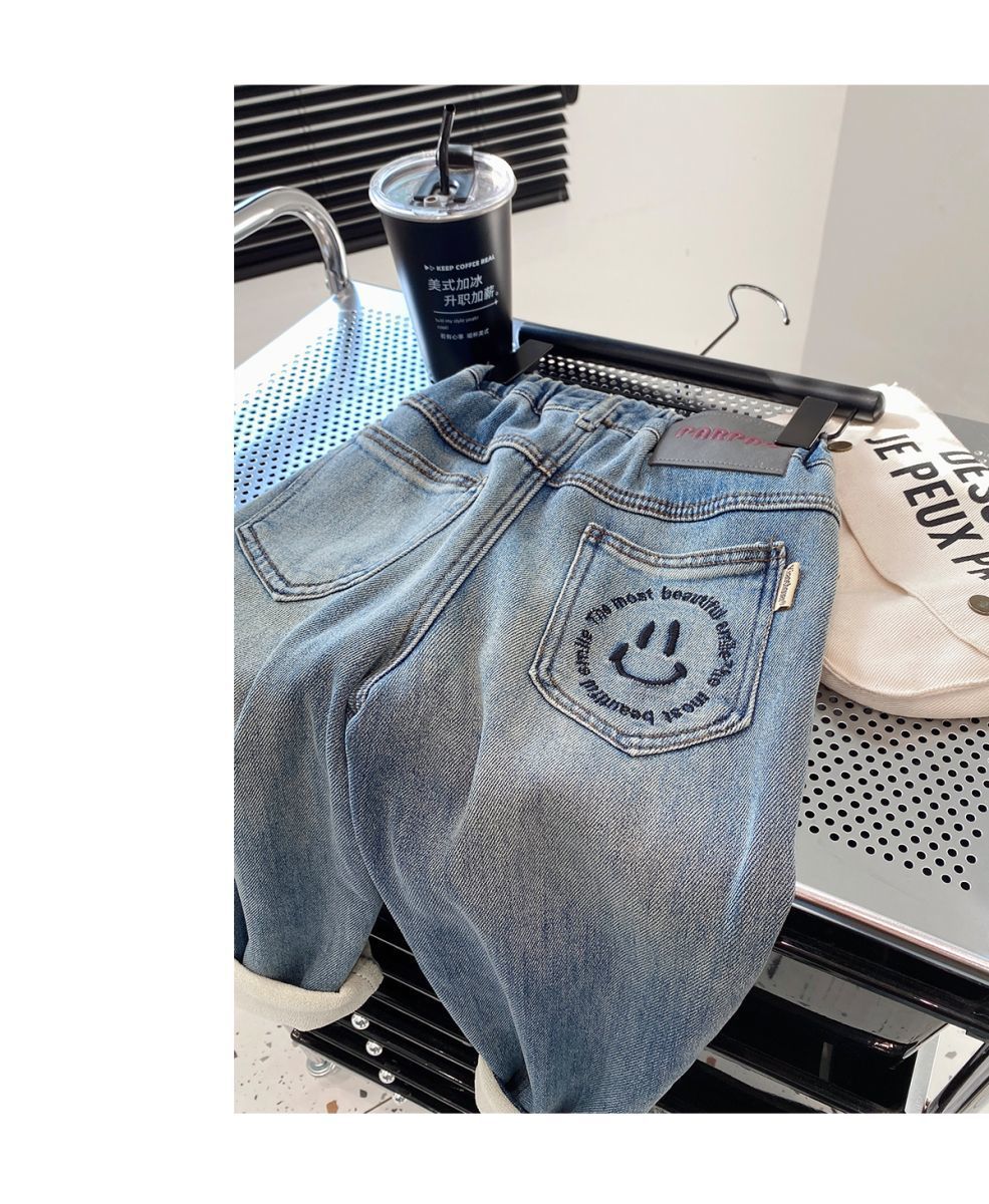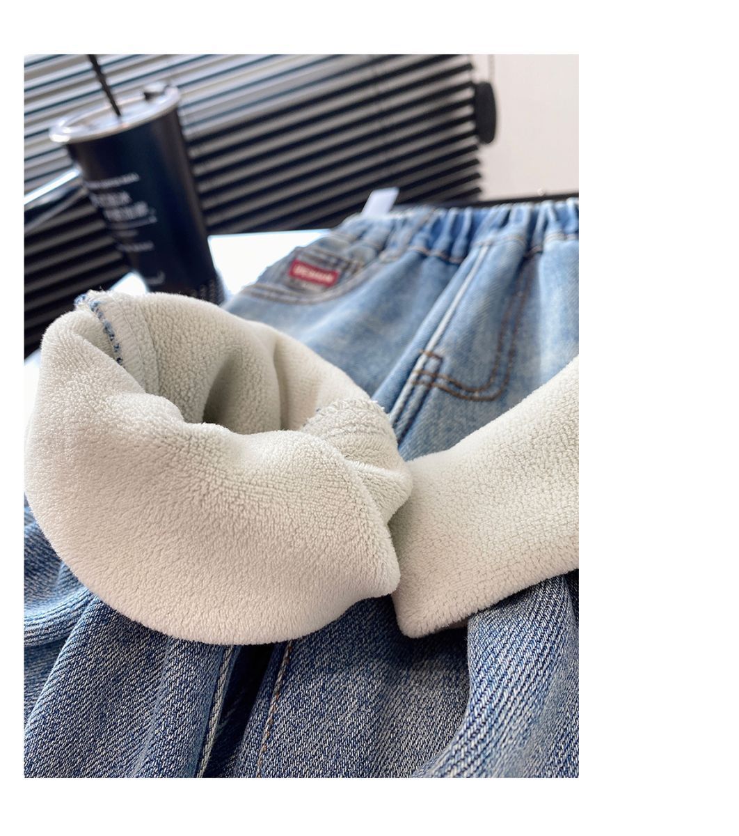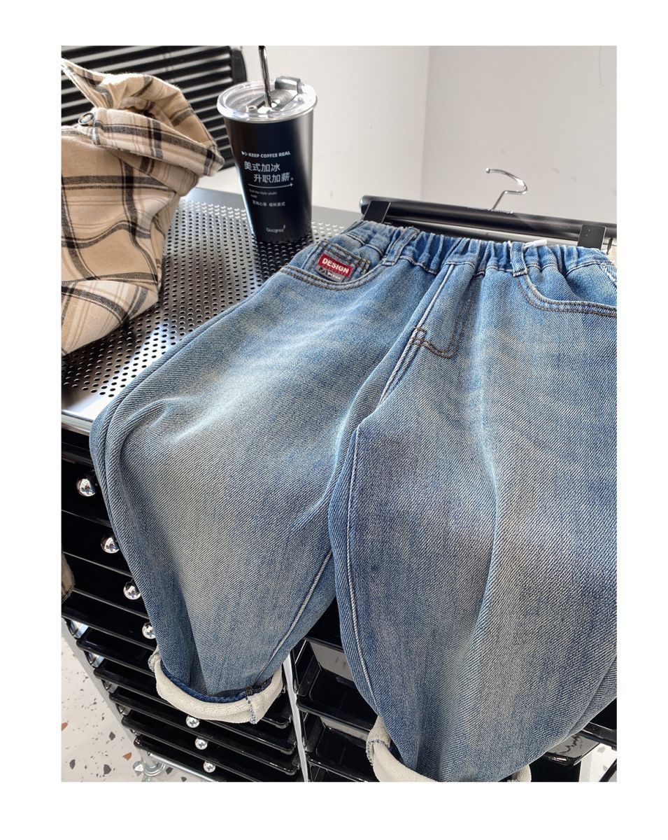 소년 청바지 아동 겨울 의류 2024 새로운 겨울 따뜻한 올인원 벨벳 웃는 얼굴 플러스 벨벳 두꺼운 다용도 바지스토어 가기
