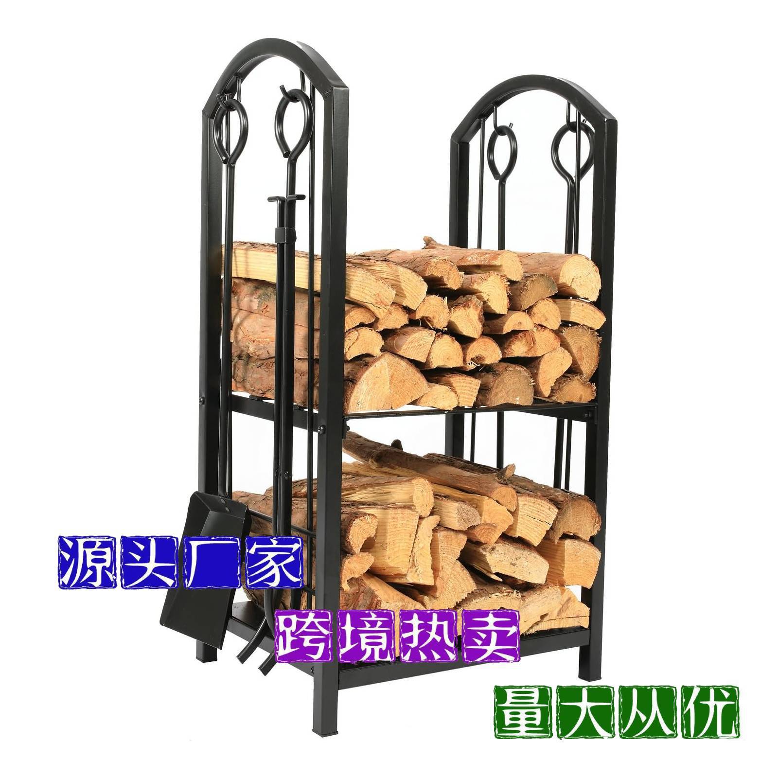 국경 간 간단한 철 장작 랙 실내 및 실외 목재 저장 랙 분리 장작 벽난로 도구 저장 랙