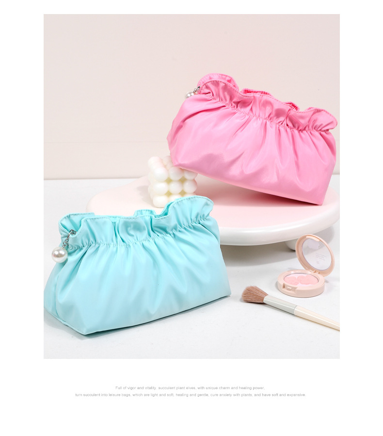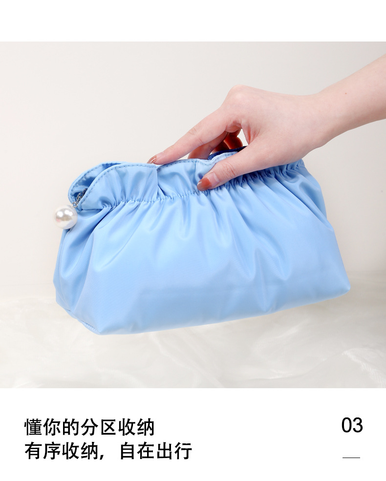 주름진 진주 화장품 가방, 대용량, 고급형, 고급스러운 화장품 가방, 여성용 수납 가방, 세면도구 가방, 드롭 배송