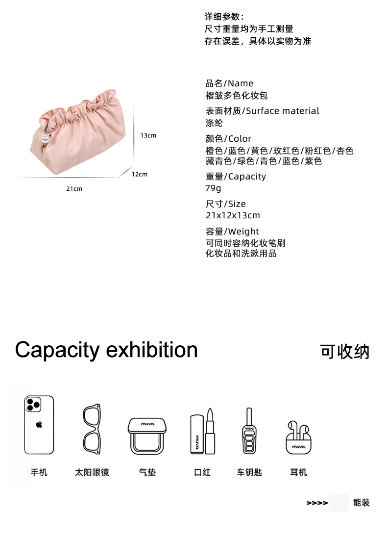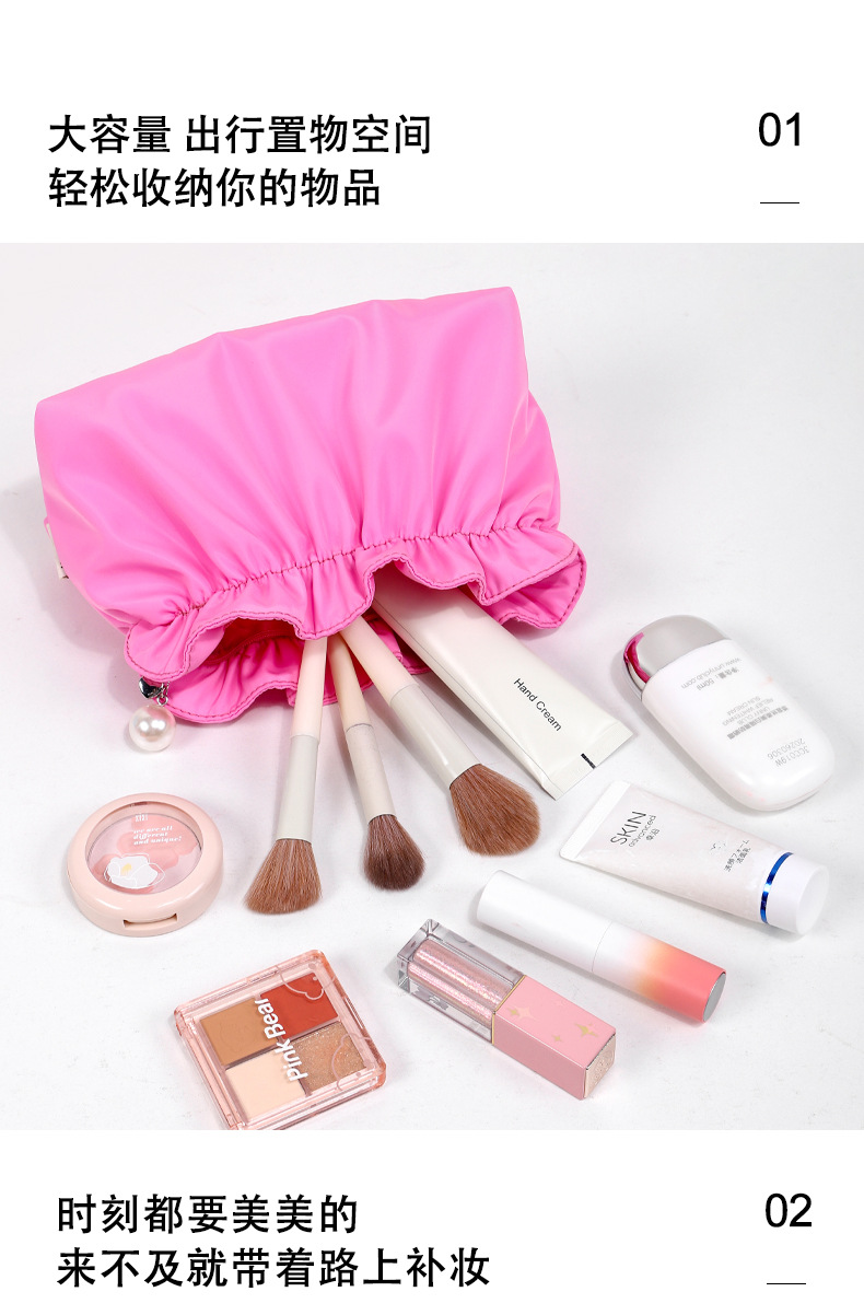 주름진 진주 화장품 가방, 대용량, 고급형, 고급스러운 화장품 가방, 여성용 수납 가방, 세면도구 가방, 드롭 배송스토어 가기