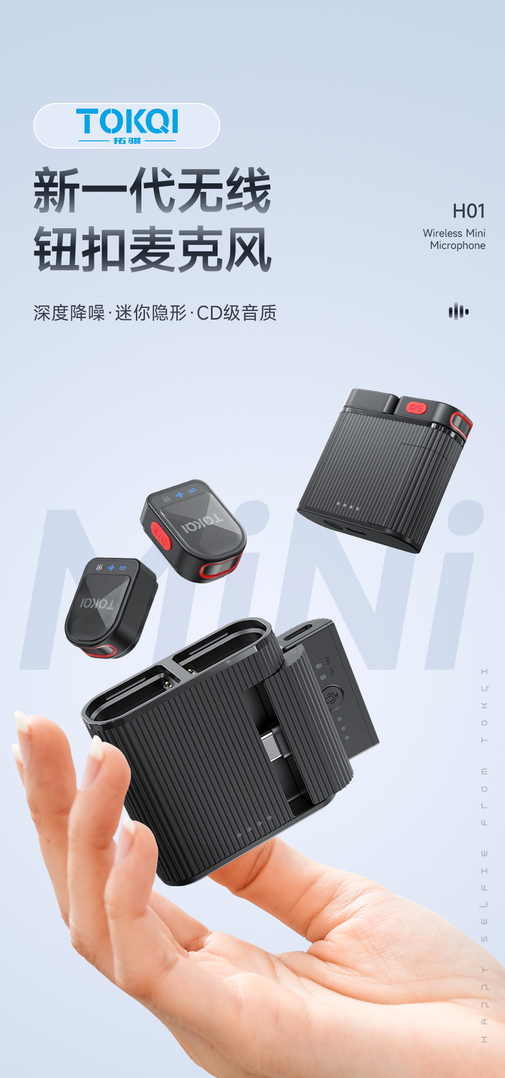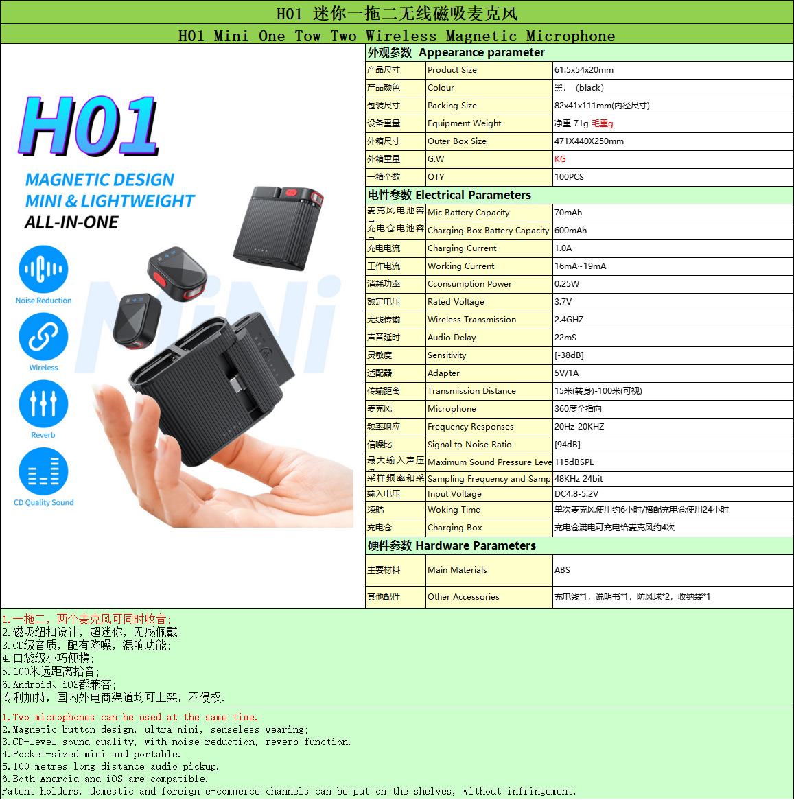 H01 미니 무선 칼라 클립 마이크 한 드래그 두 라디오 마이크 라이브 특수 버튼 자기 녹음 마이크