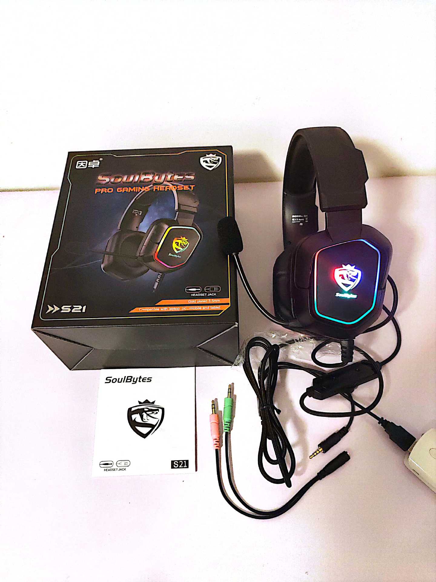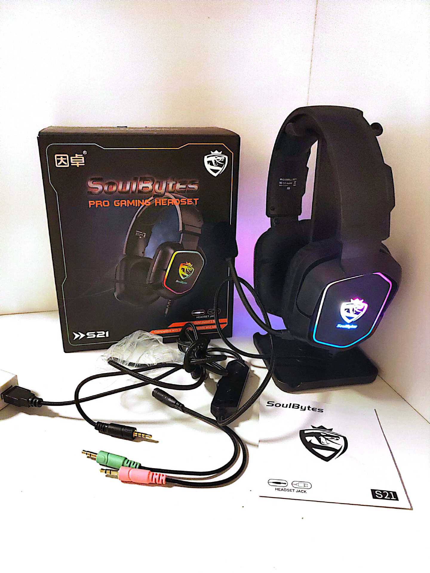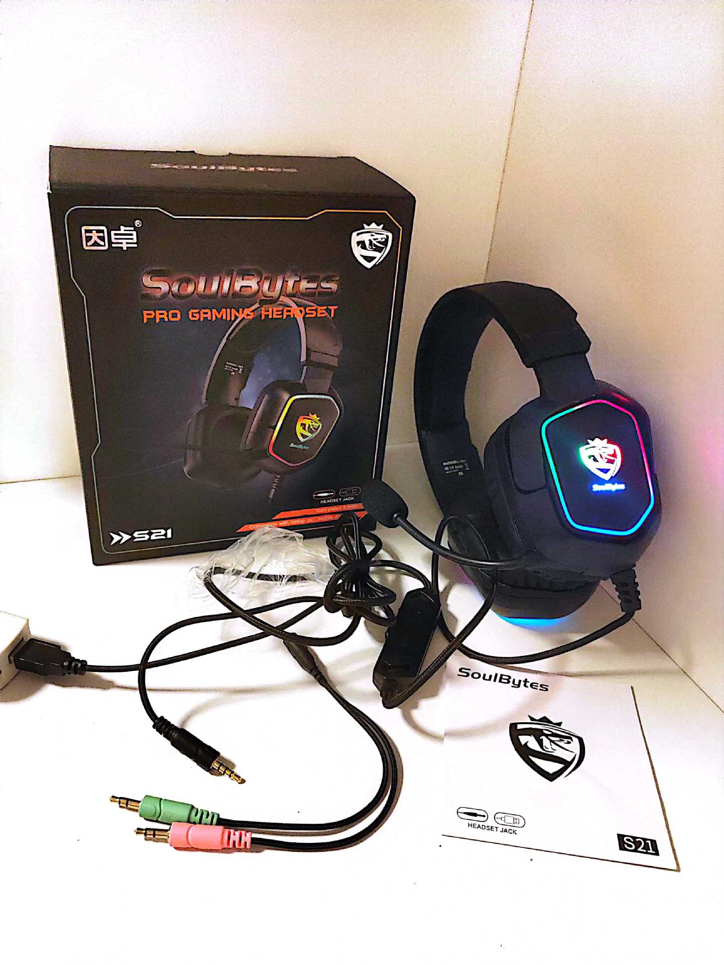 PS4游戏耳机,带有麦克风的有线PC游戏耳机,3.5mm过耳低音立体声,控制噪音,用于Xbox One S的彩色LED灯,Nintendo开关,PC,笔记本电脑,平板电脑,手机;
