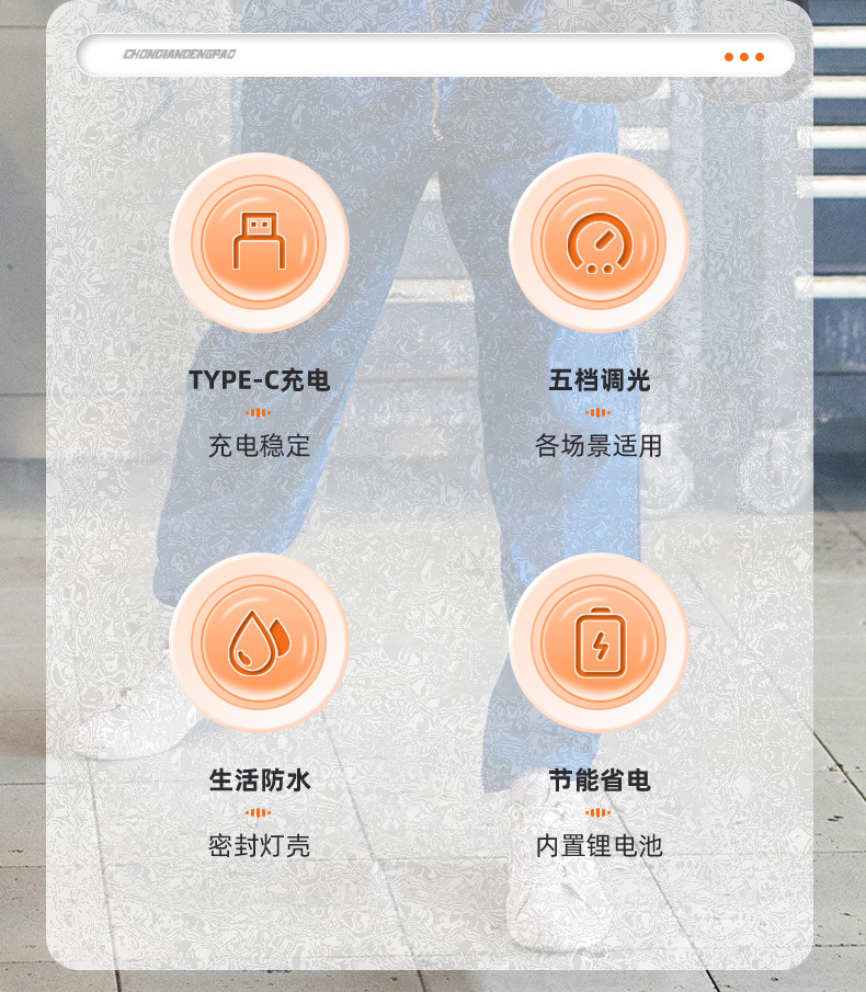 • 회색 휴대용 작업등 Type-C