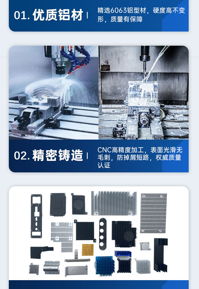 • 열 전도성 파란색 접착제가 있는 40*40*8MM 검정색 분할