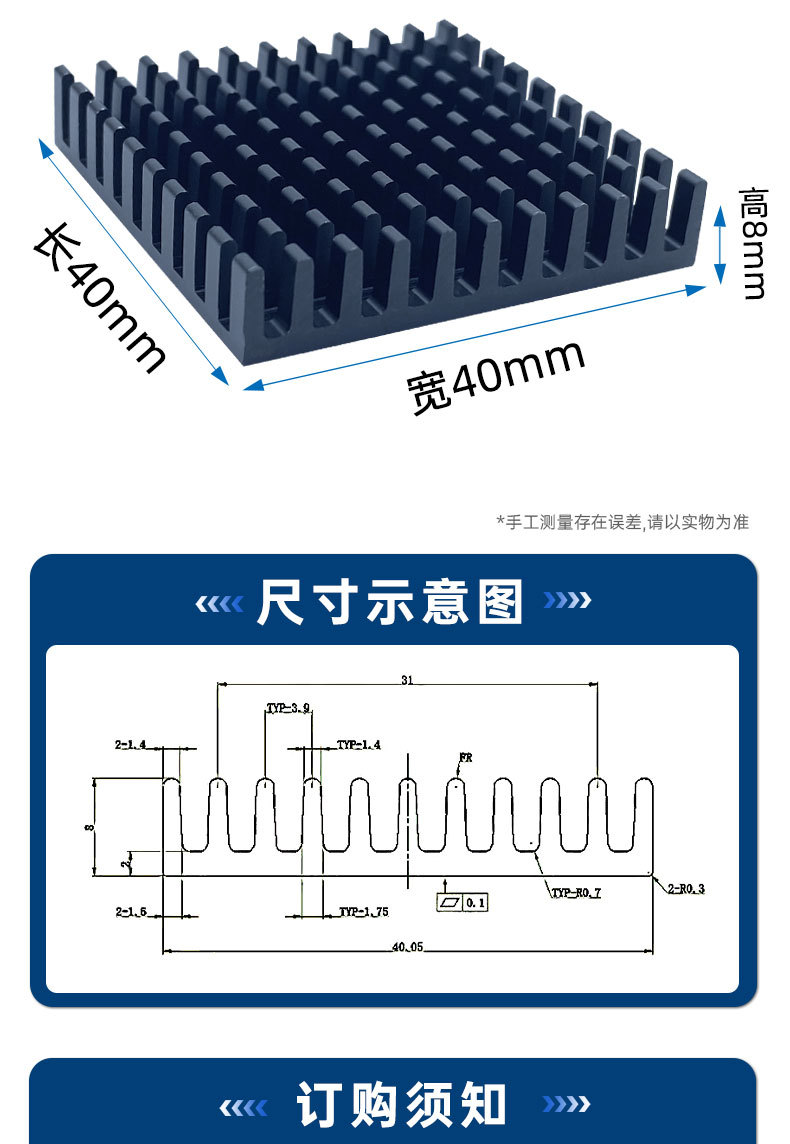 40*40*8MM 알루미늄 합금 라우팅 마더 보드 사각형 방열판 CPU 깨진 라디에이터 전자 열 전도 블록스토어 가기