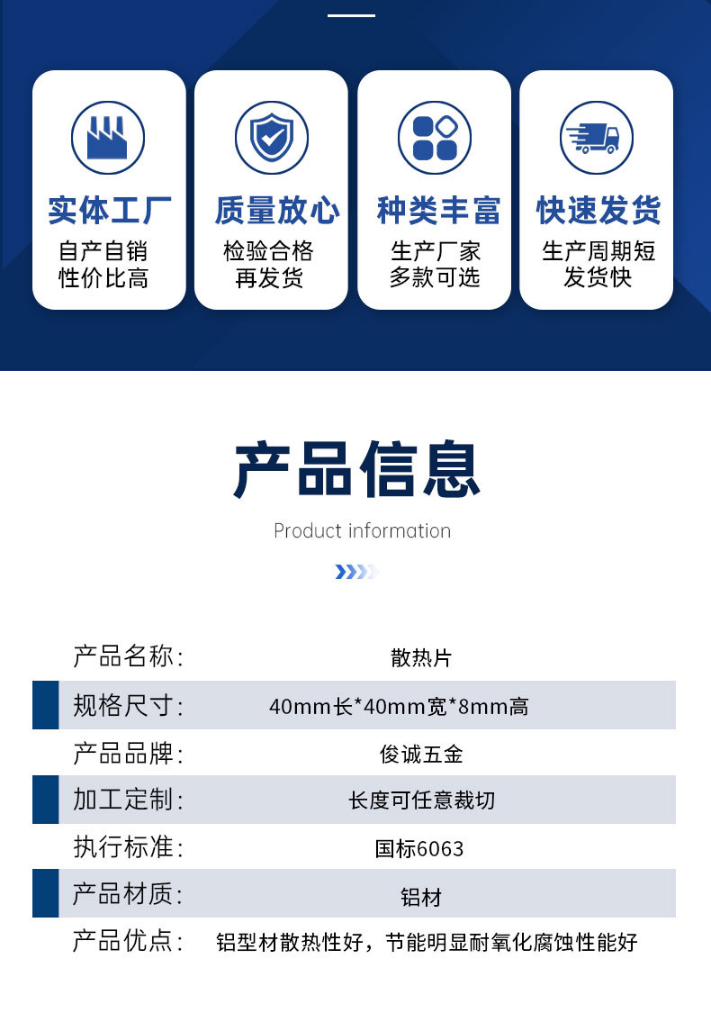 40*40*8MM 알루미늄 합금 라우팅 마더 보드 사각형 방열판 CPU 깨진 라디에이터 전자 열 전도 블록