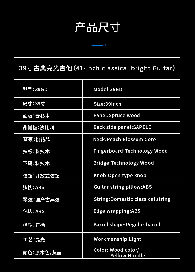 클래식 어쿠스틱 기타 39inch 스프루스 사펠리어 밝은 클래식 기타 기타 성인 연주 등급 기타 악기스토어 가기