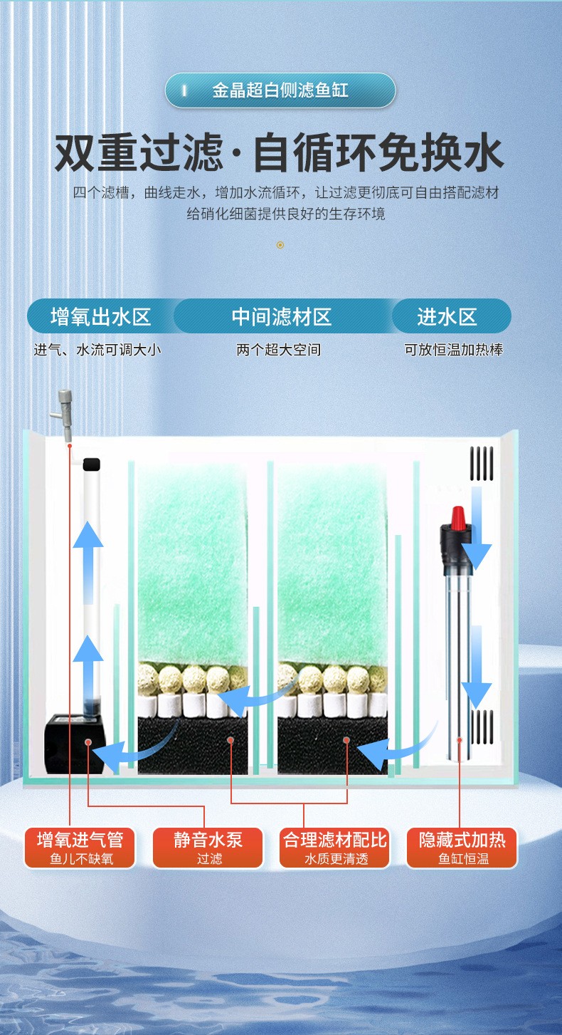 소형 백필터 어항 물갈이 필요 없는 수족관 워터블레이드 백플레이트 가정용 백필터 관상어 생태 순환 시스템