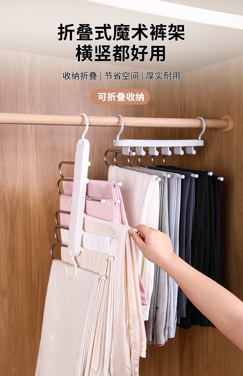 접이식 바지 랙 다층 바지 저장 옷걸이 매직 바지 클립 다기능 스테인레스 스틸 미끄럼 방지 바지 옷걸이