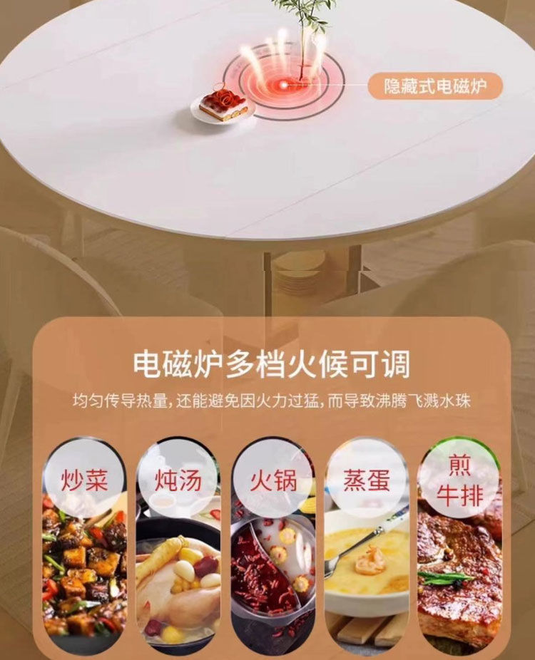 크림 스타일 단단한 나무 바위 보드 식탁 흰색 개폐식 이중 목적 저장 테이블 및 의자 현대 간단한 다기능 테이블스토어 가기
