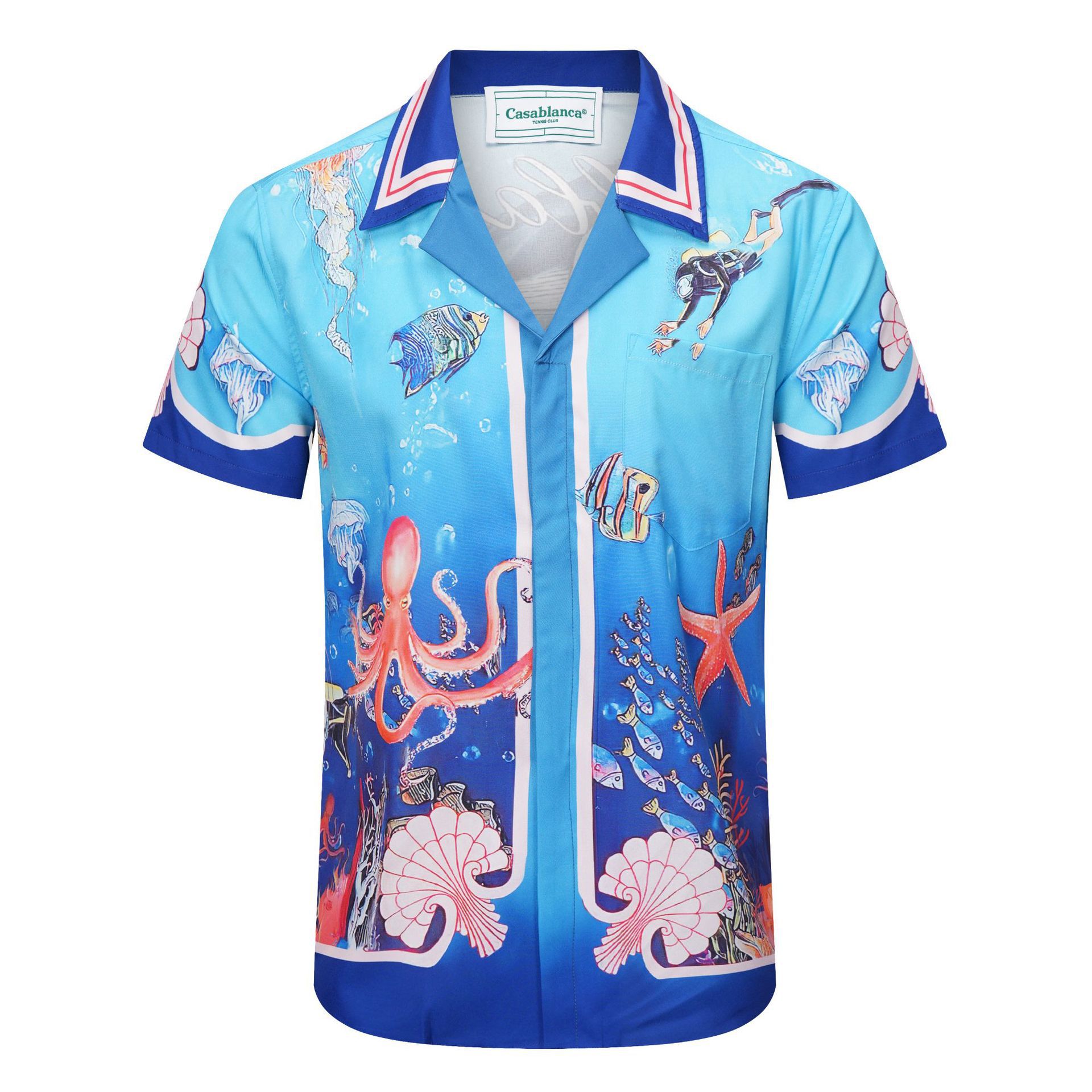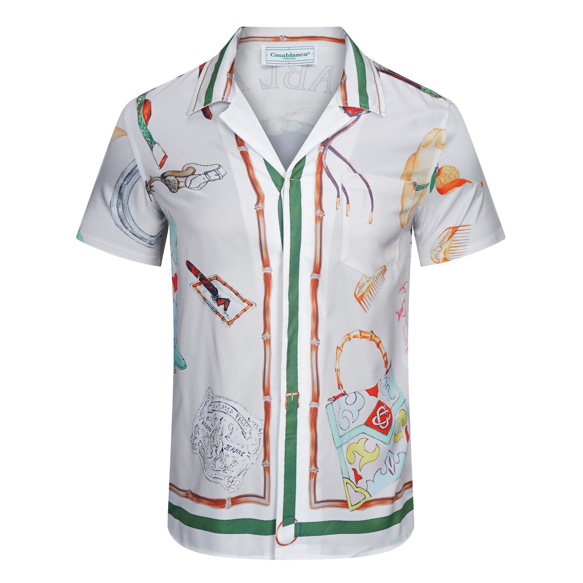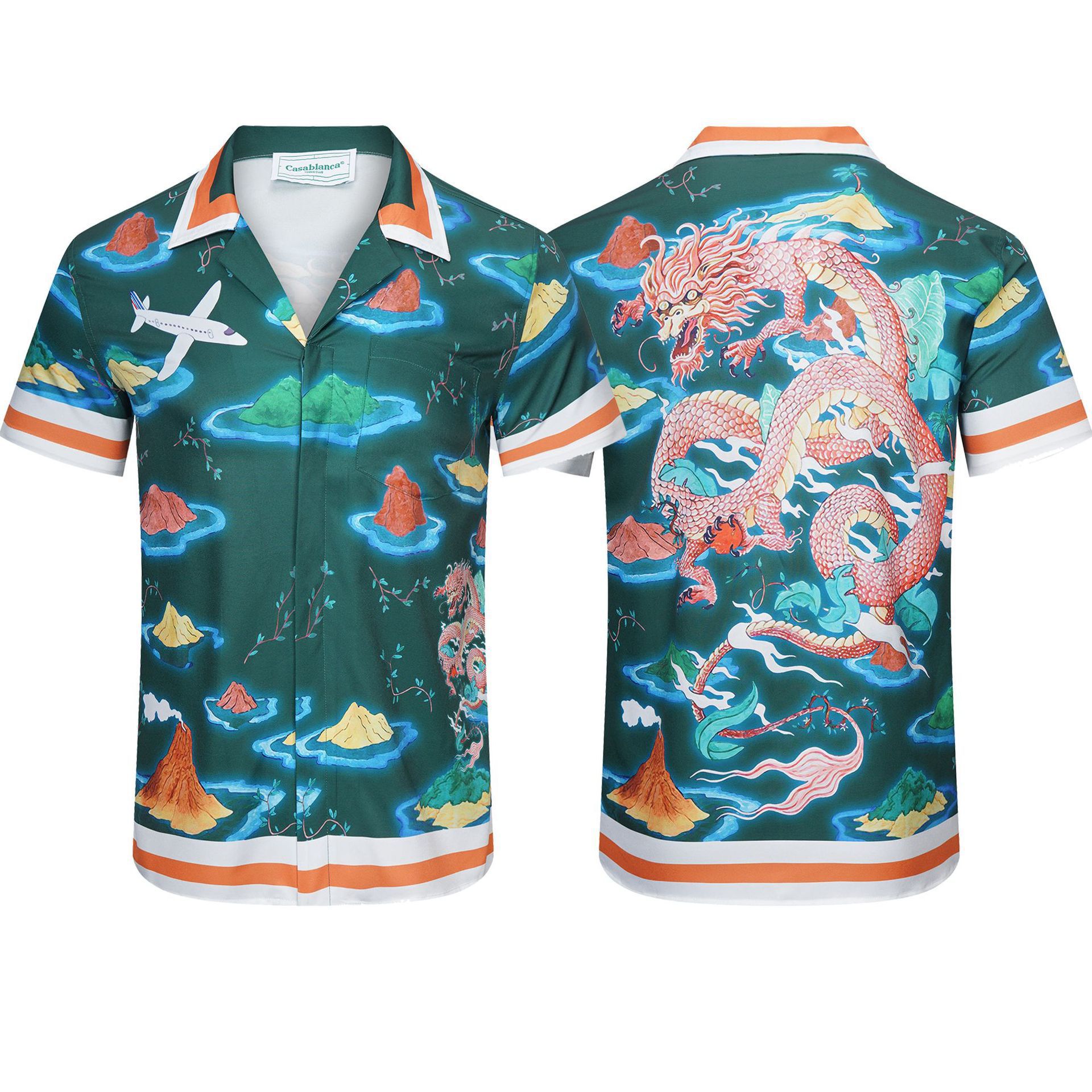 새로운 여름 CASA 인기있는 카사 블랑카 디지털 제트 인쇄 남성용 멋진 캐주얼 셔츠 통기성스토어 가기