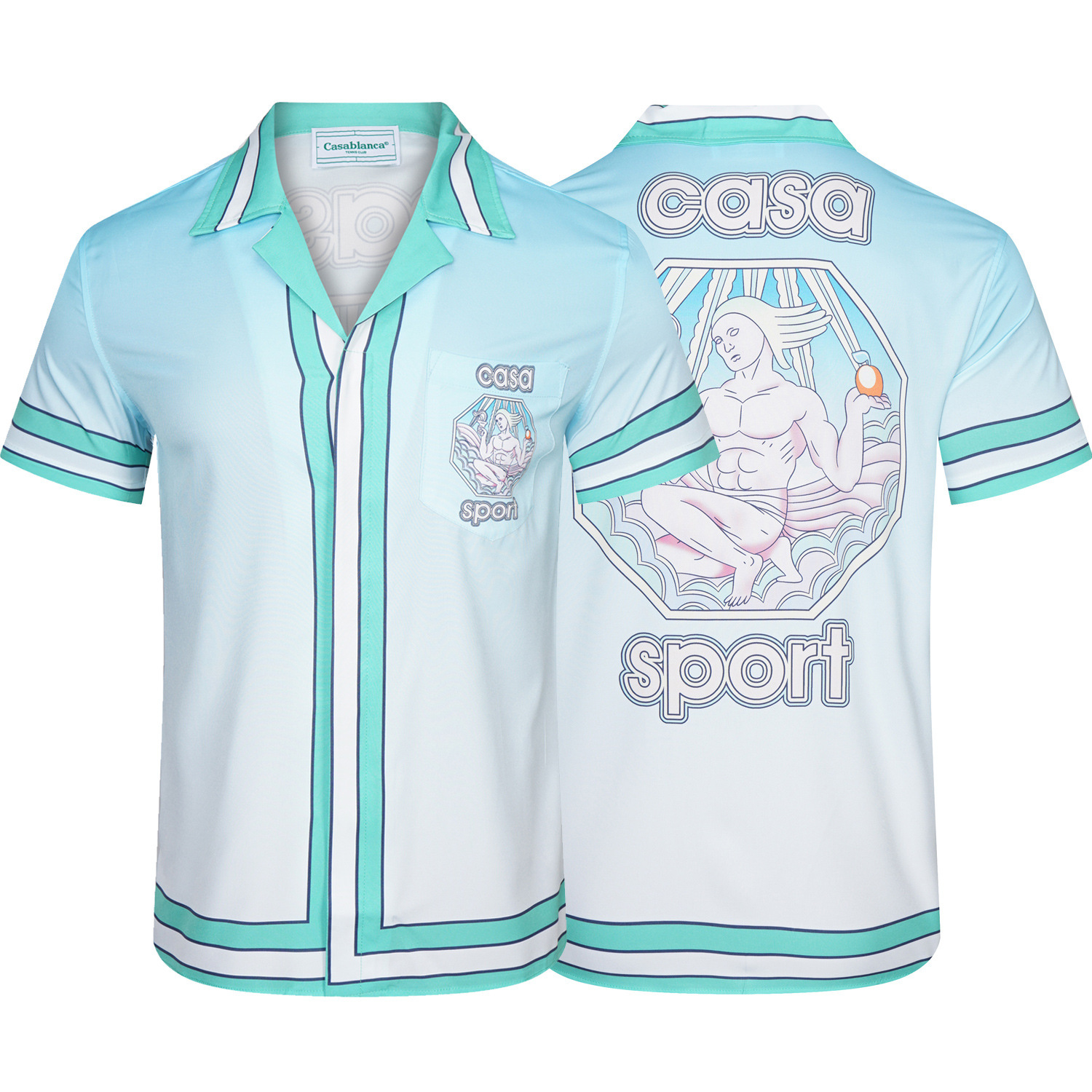 새로운 여름 CASA 인기있는 카사 블랑카 디지털 제트 인쇄 남성용 멋진 캐주얼 셔츠 통기성
