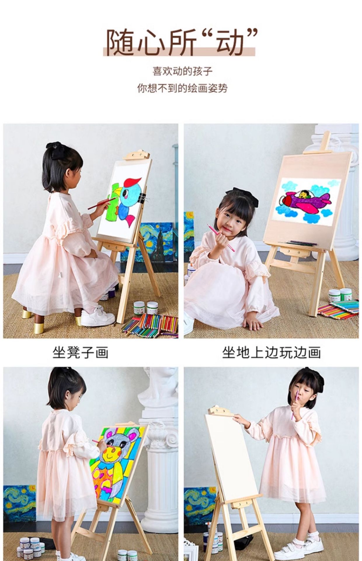 • 90cm 어린이 황송 이젤 + 8K 드로잉 보드 + 스케치 펜 커튼 세트