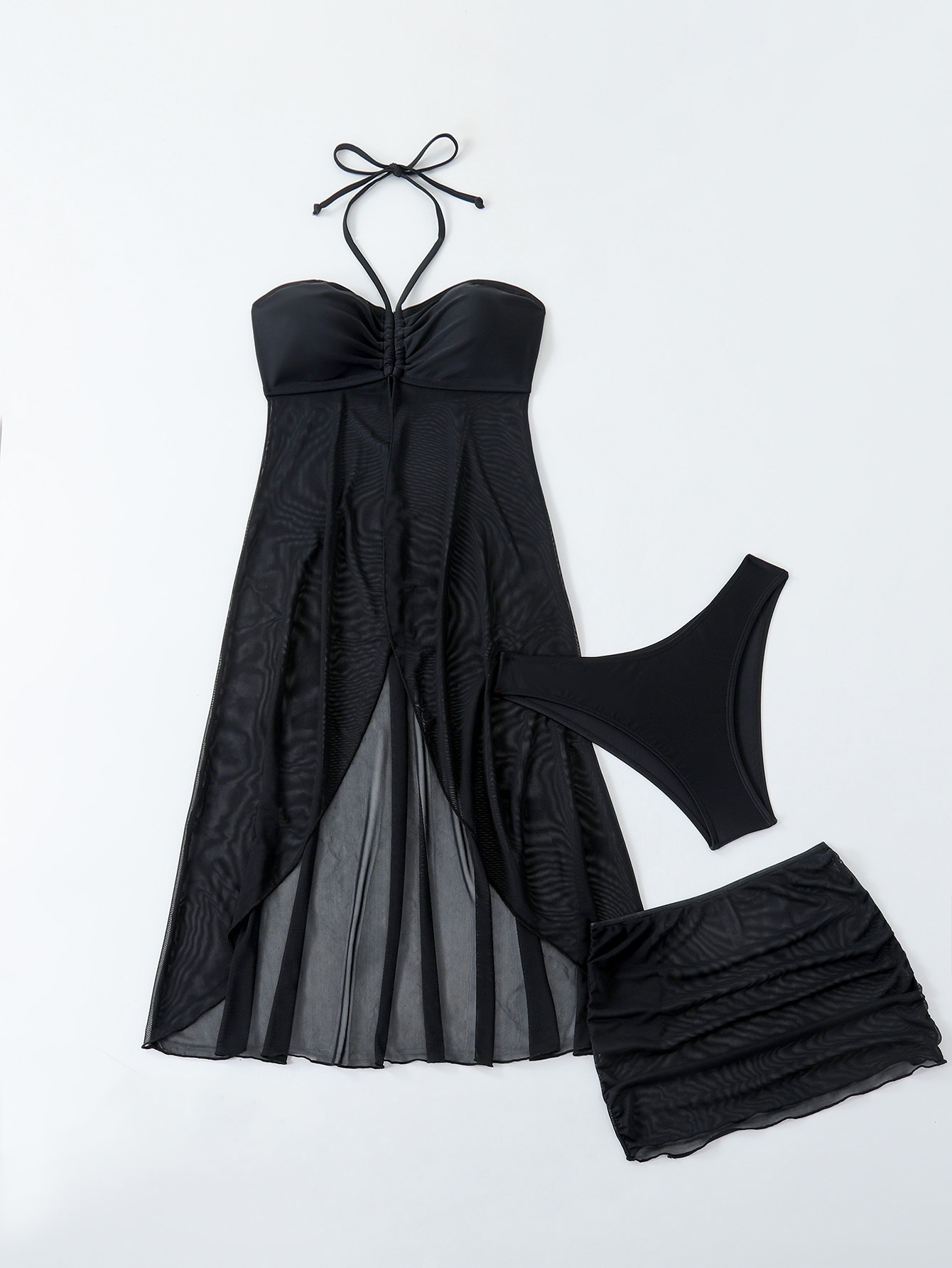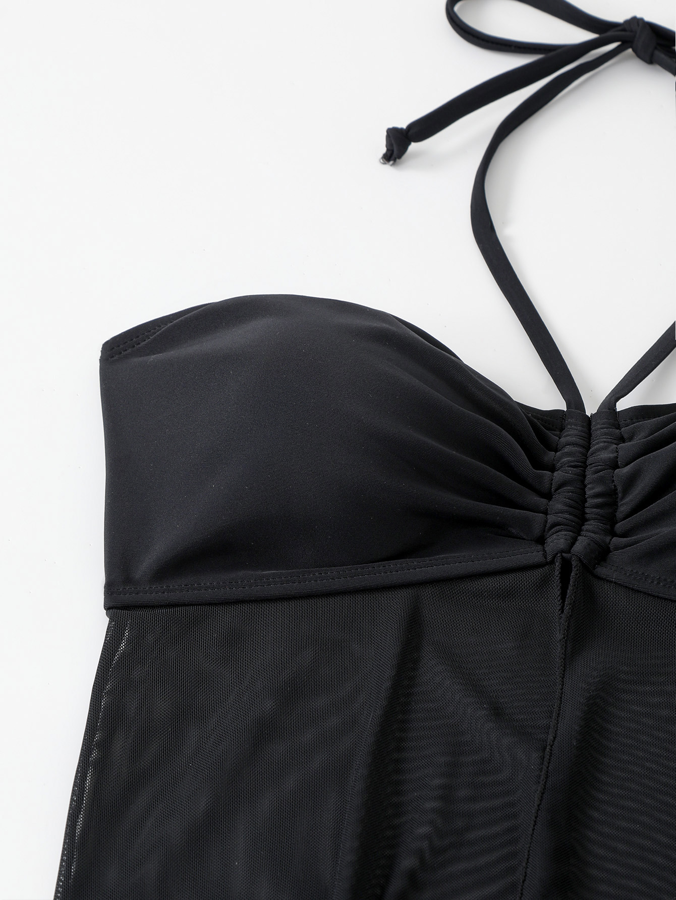 유럽과 미국은 국경을 넘나 드는 새로운 여성의 단색 메쉬 스티칭 목 레이스 업 섹시한 자외선 차단제 비키니 스플릿 수영복