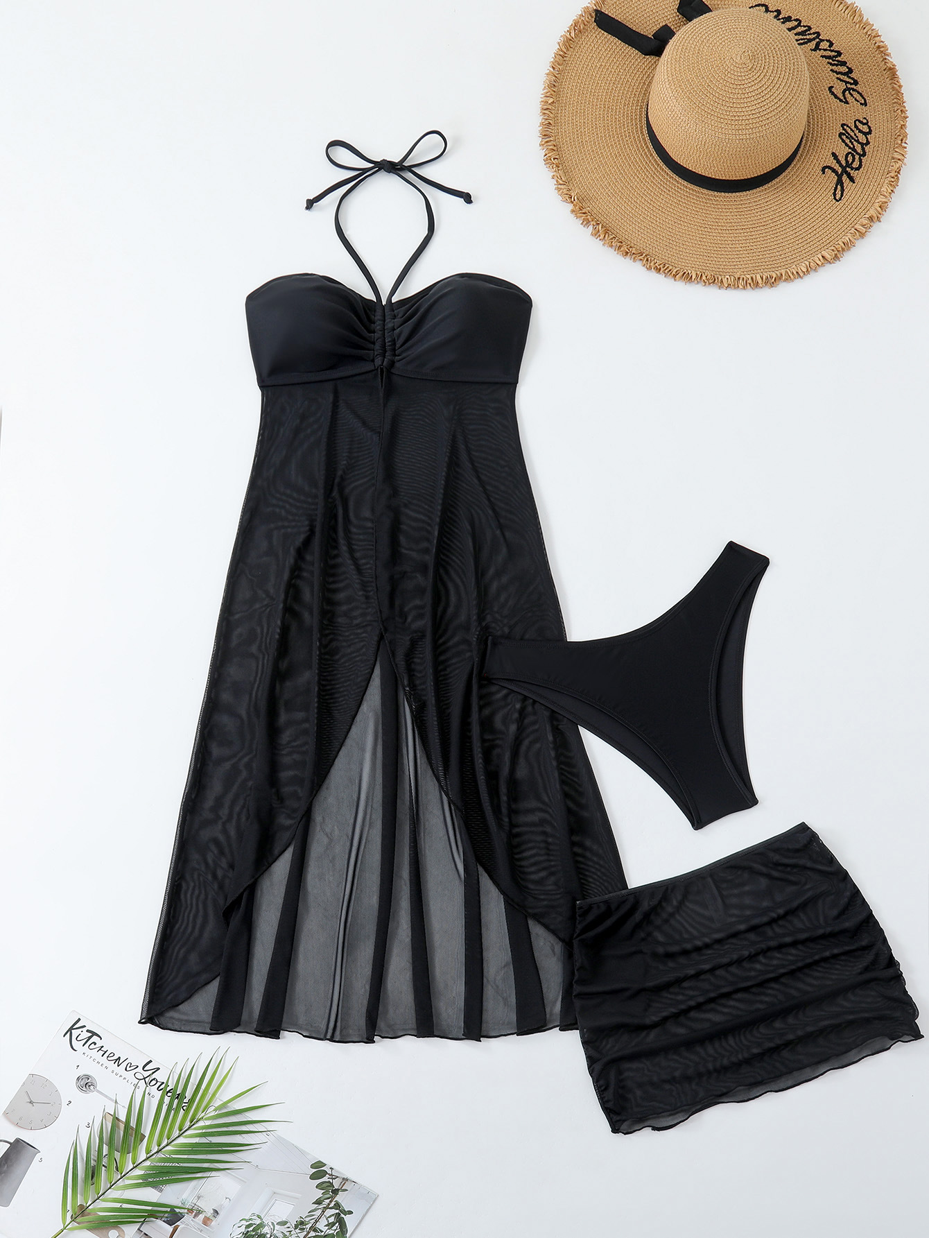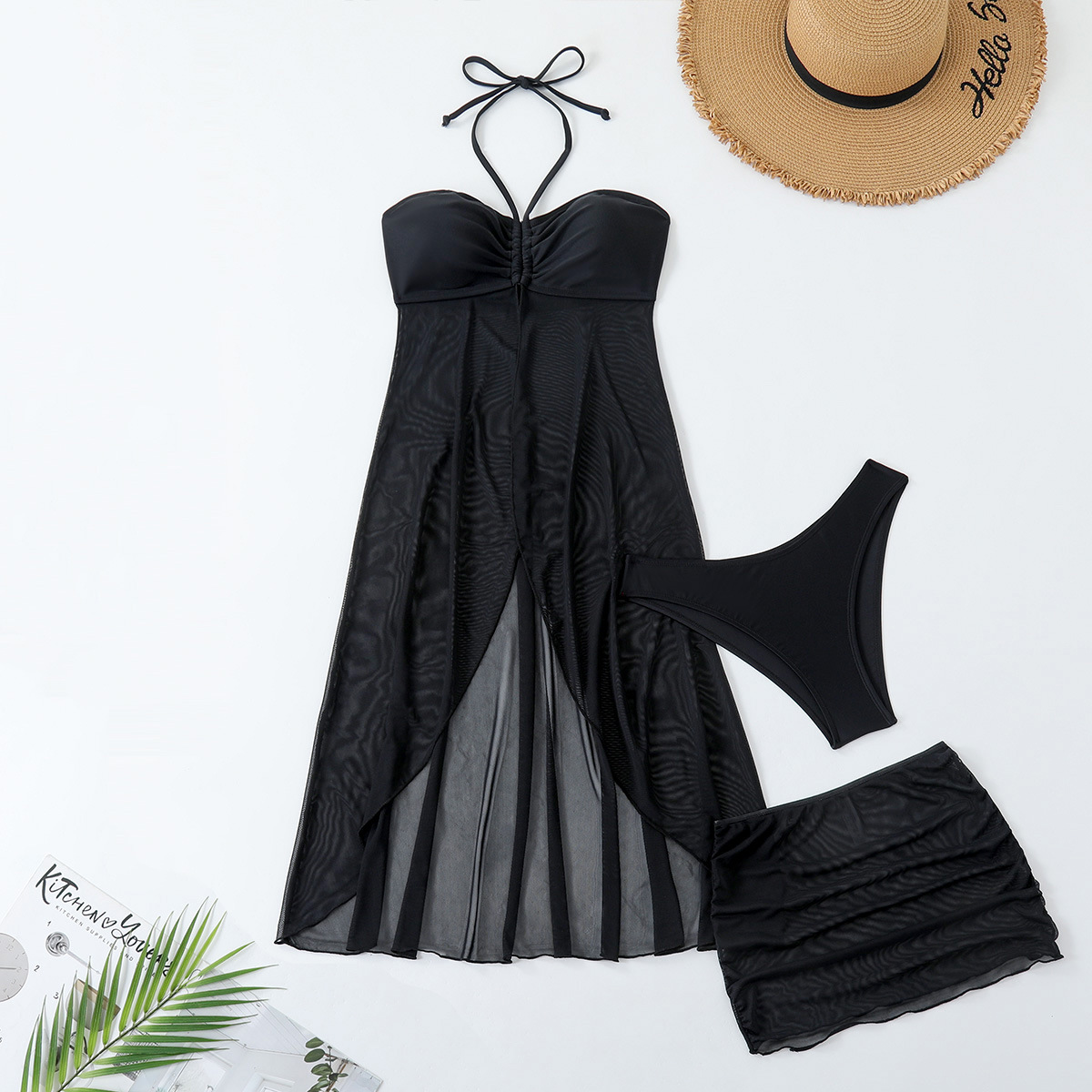 유럽과 미국은 국경을 넘나 드는 새로운 여성의 단색 메쉬 스티칭 목 레이스 업 섹시한 자외선 차단제 비키니 스플릿 수영복스토어 가기