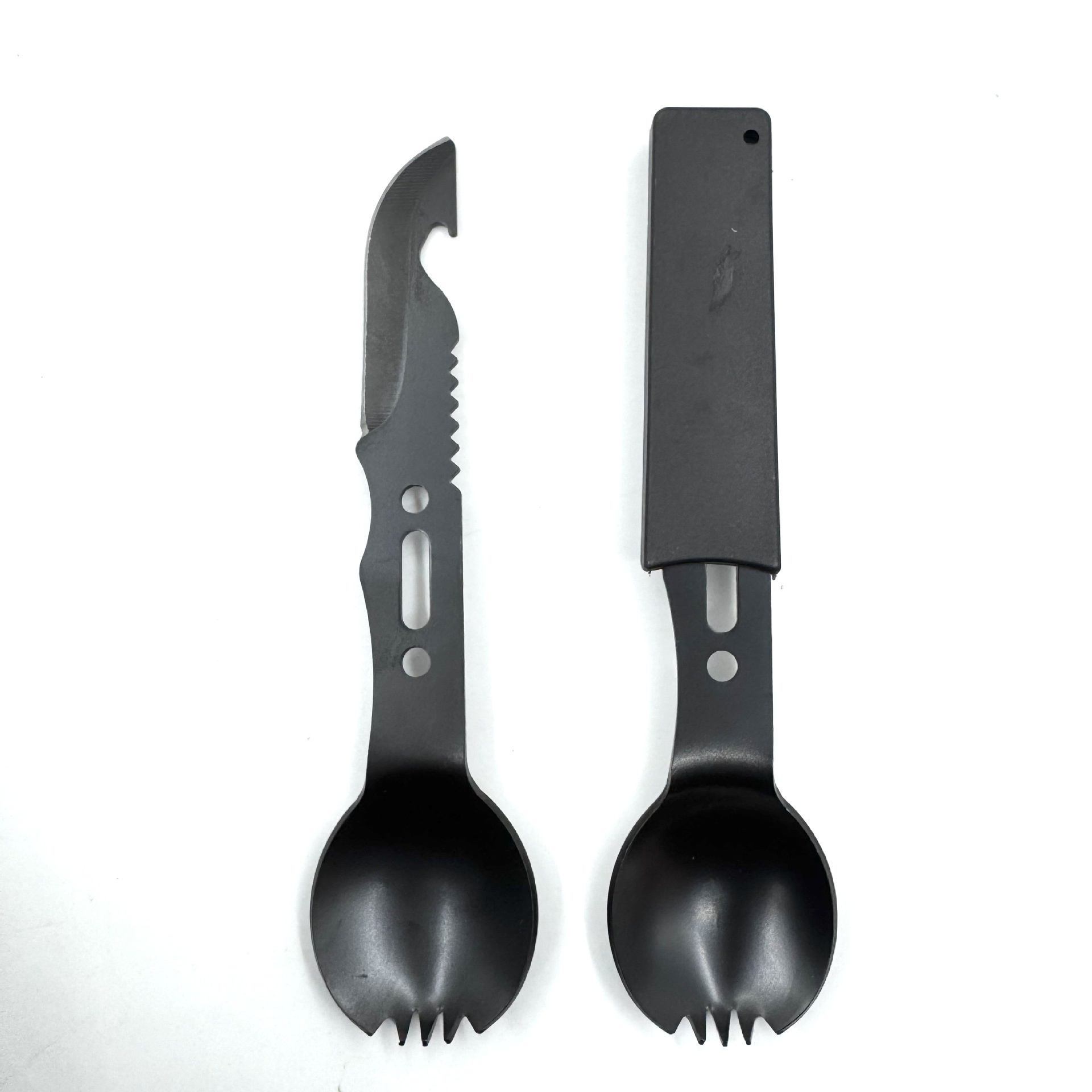 소스 제조업체 도매 다기능 캠핑 식기 칼, 포크 및 스푼 호루라기 야외 등산 비상 생존 장치
