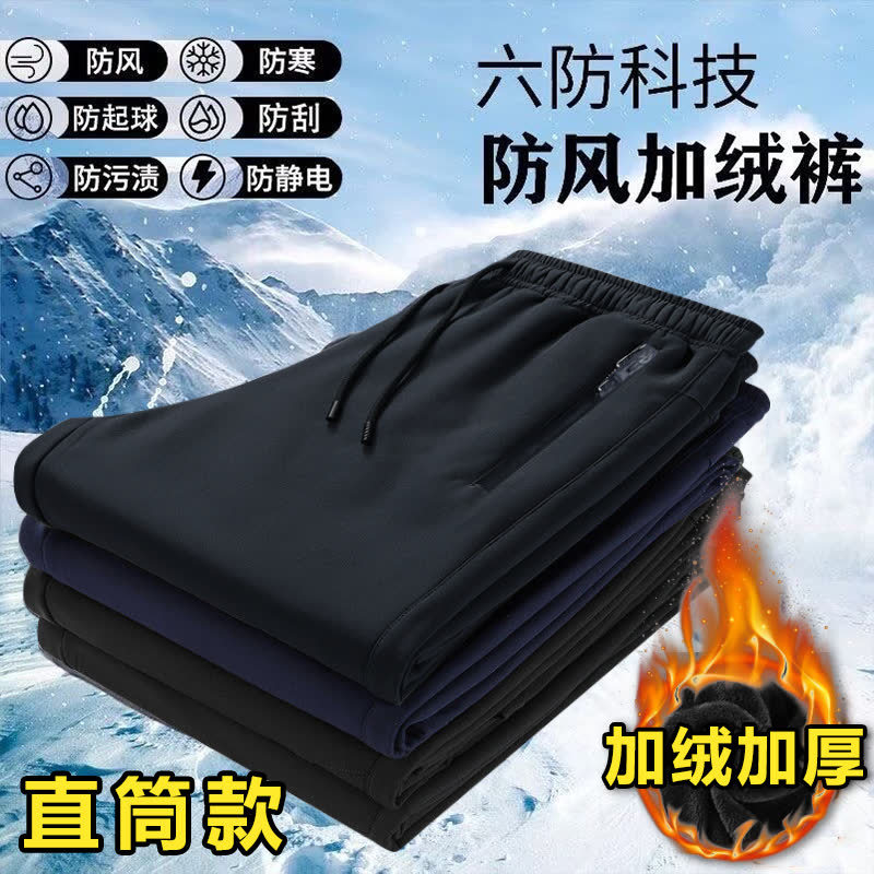 가을과 겨울 기모 따뜻한 방풍 바지 커플 남녀 면 바지 느슨한 플러스 사이즈 캐주얼 바지 스포츠 바지