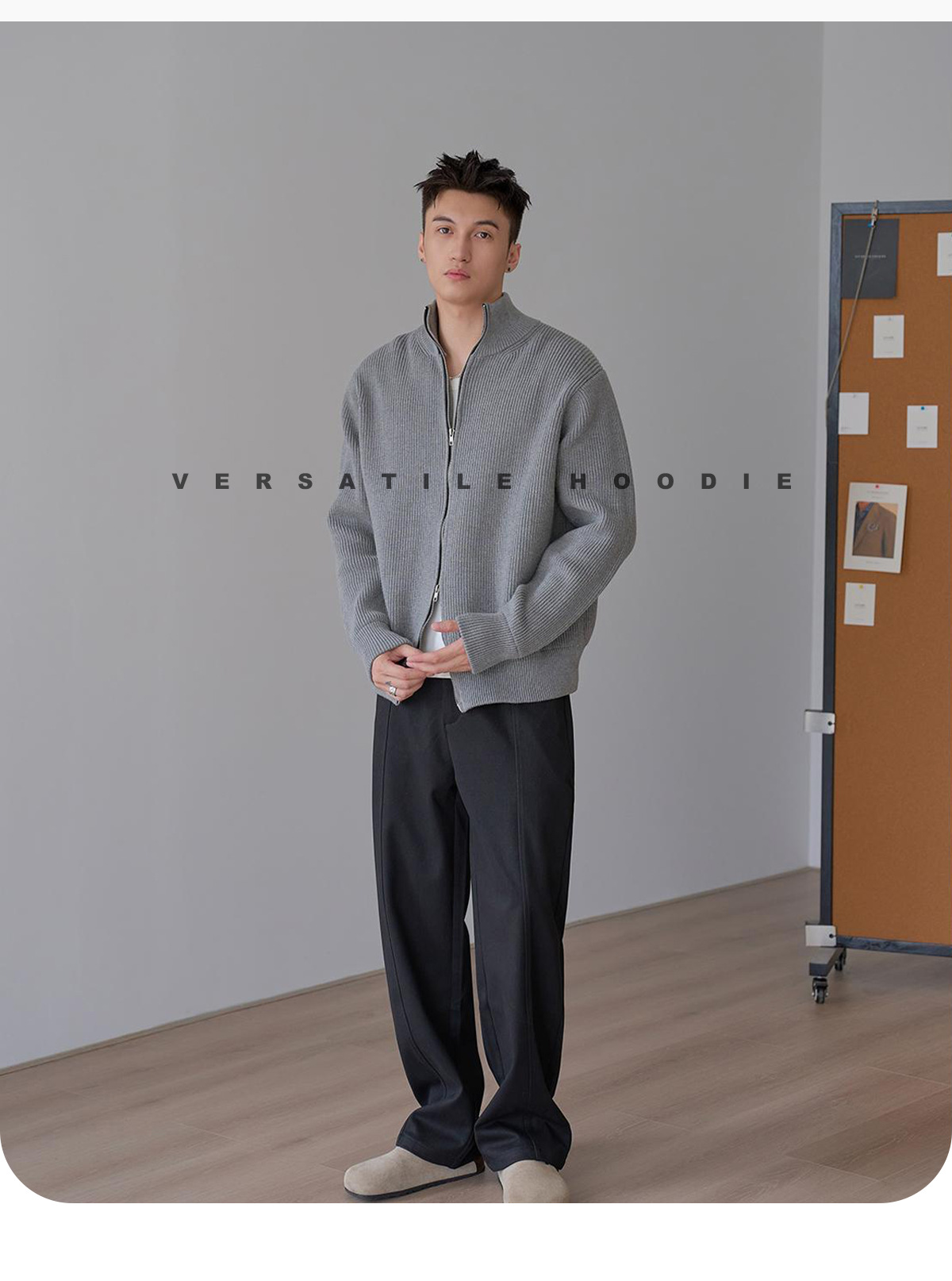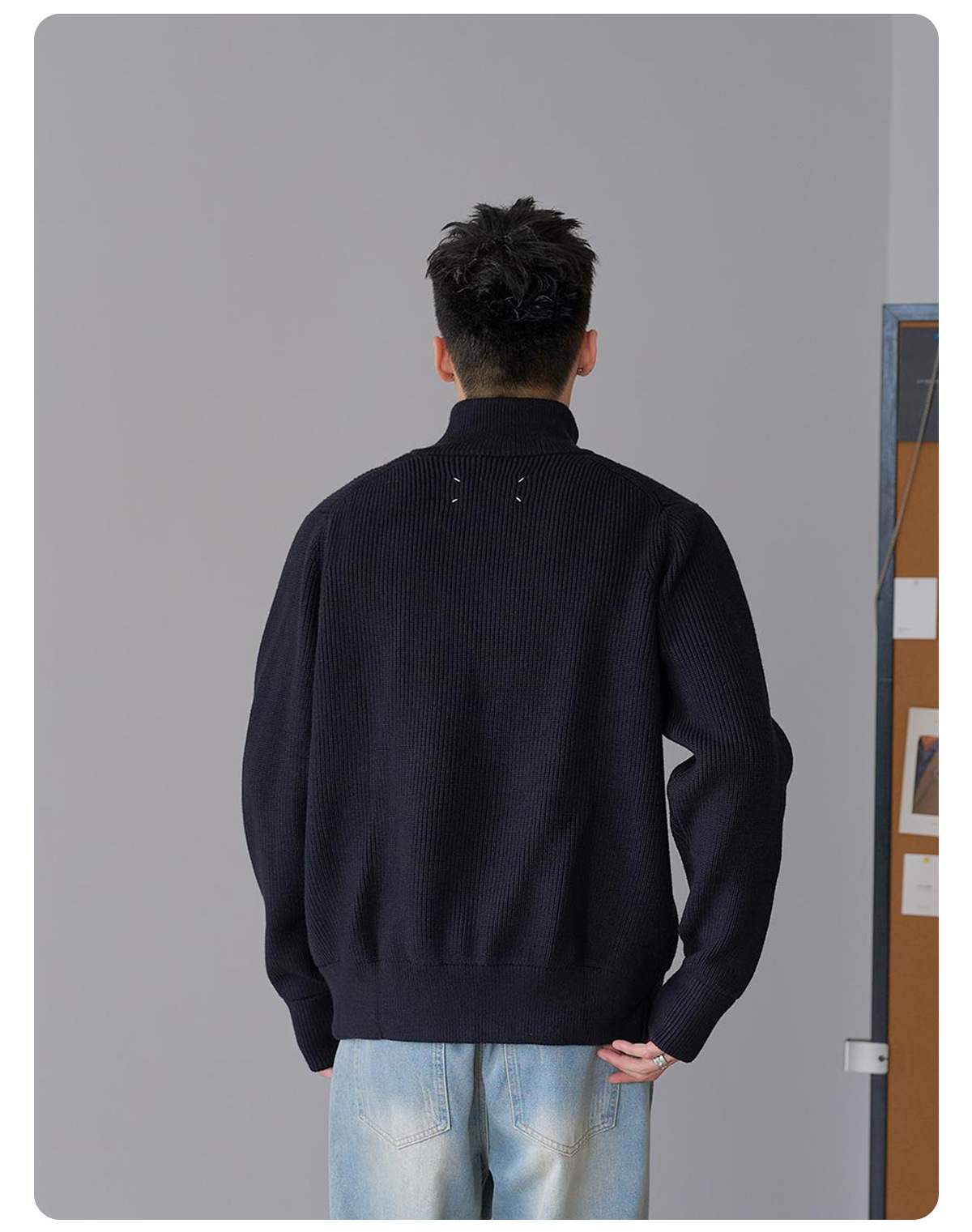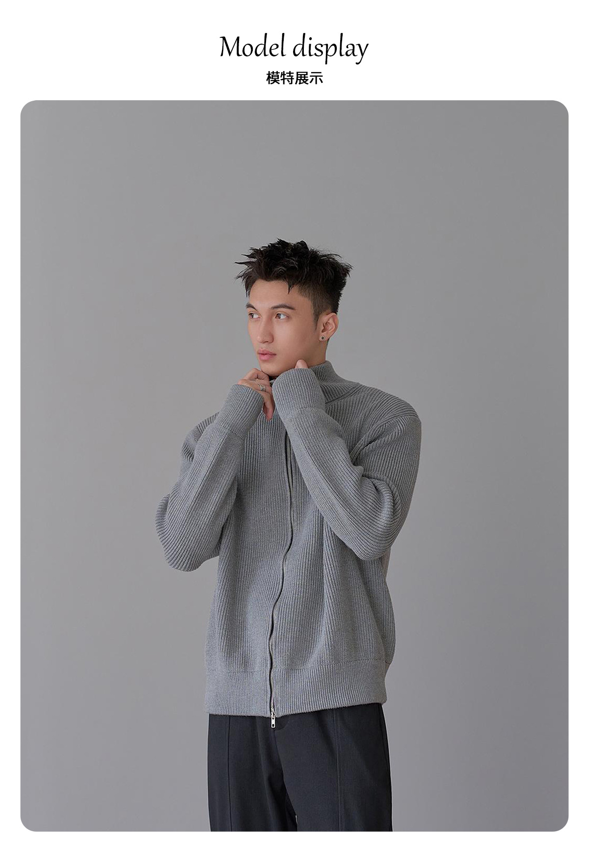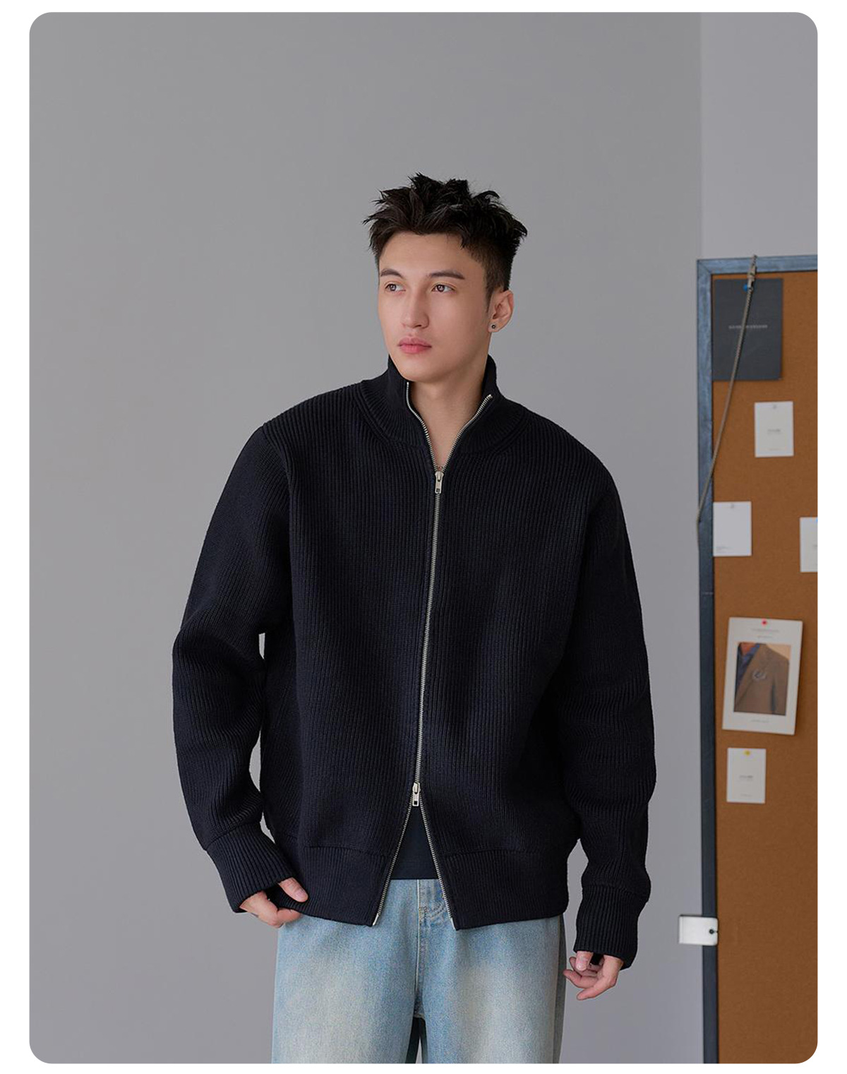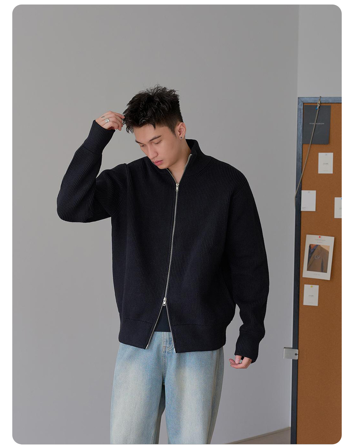 【CSMY】가을 겨울 양방향 지퍼 하이 칼라 헤비 가디건 재킷 남성 루즈 블랙 니트 스웨터 마랄라스토어 가기