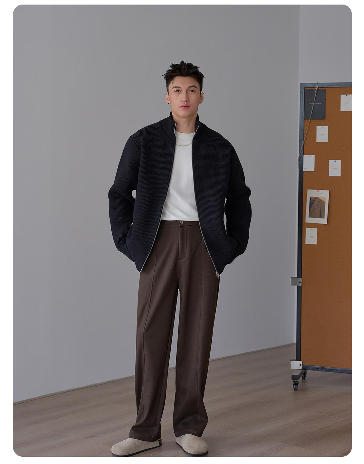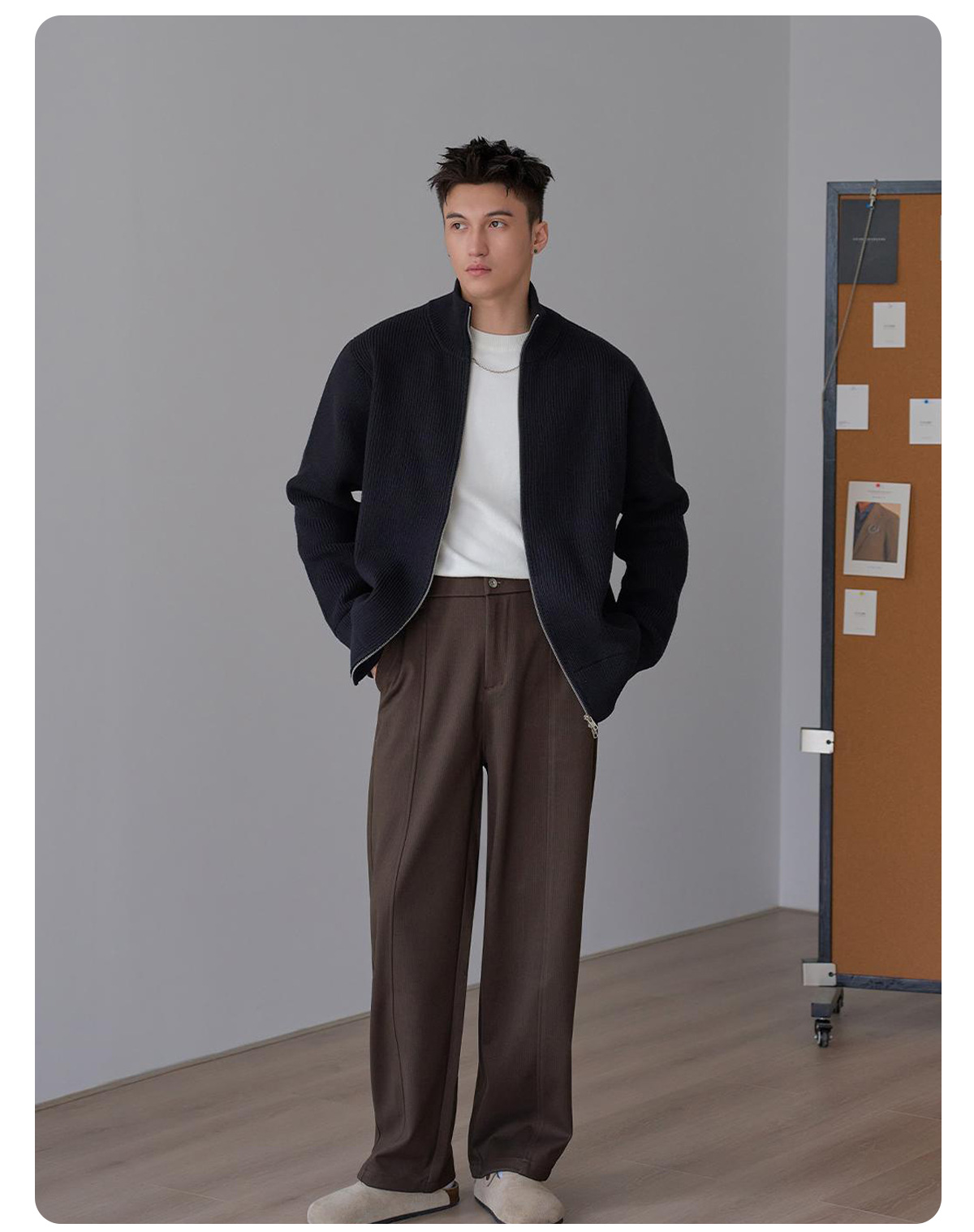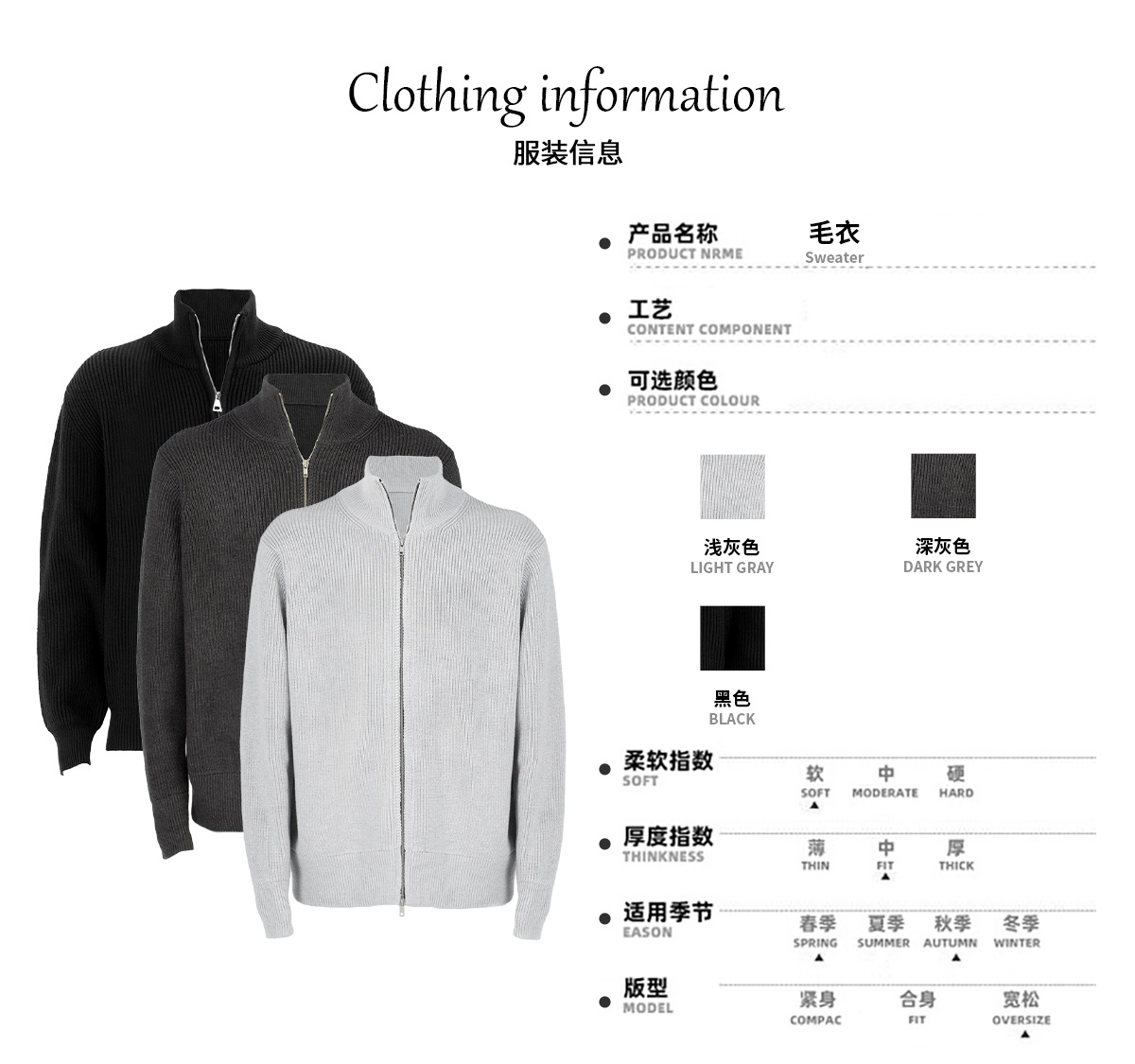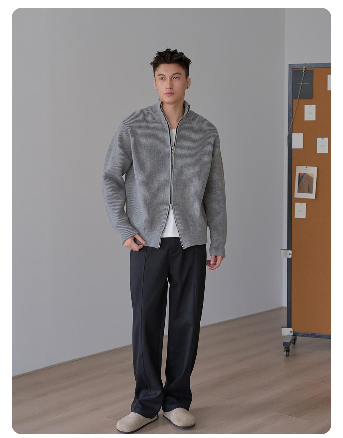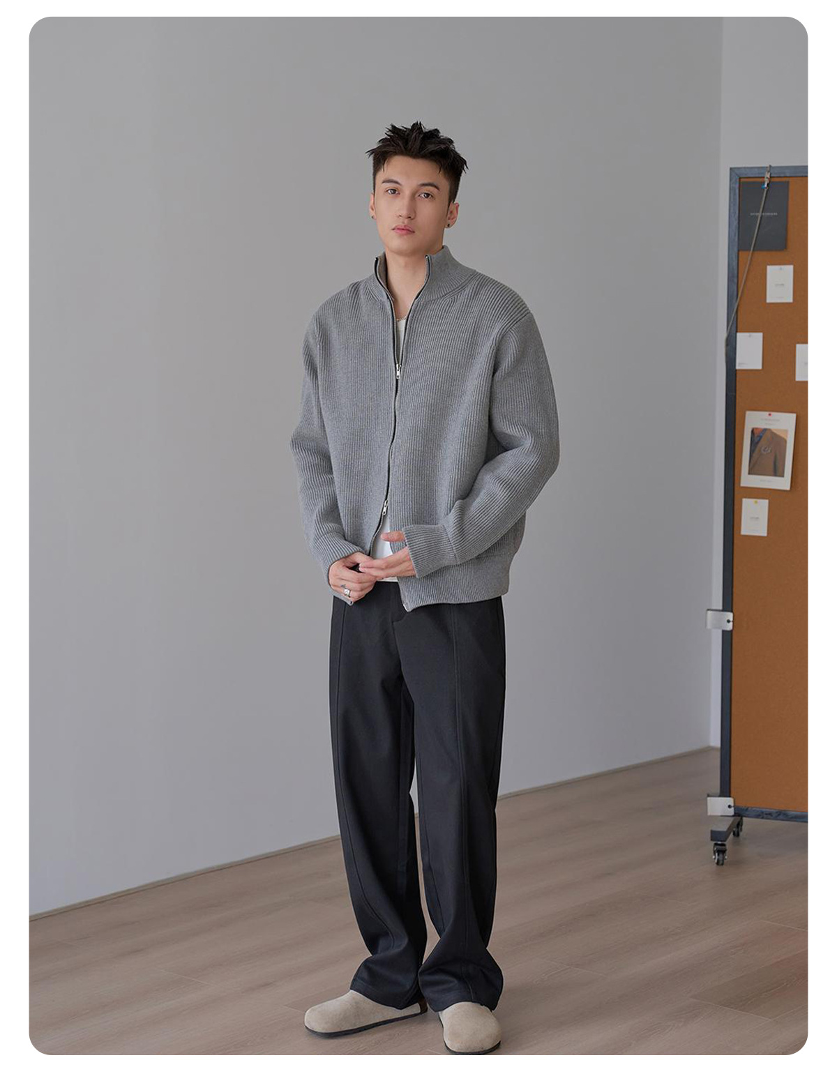 【CSMY】가을 겨울 양방향 지퍼 하이 칼라 헤비 가디건 재킷 남성 루즈 블랙 니트 스웨터 마랄라스토어 가기