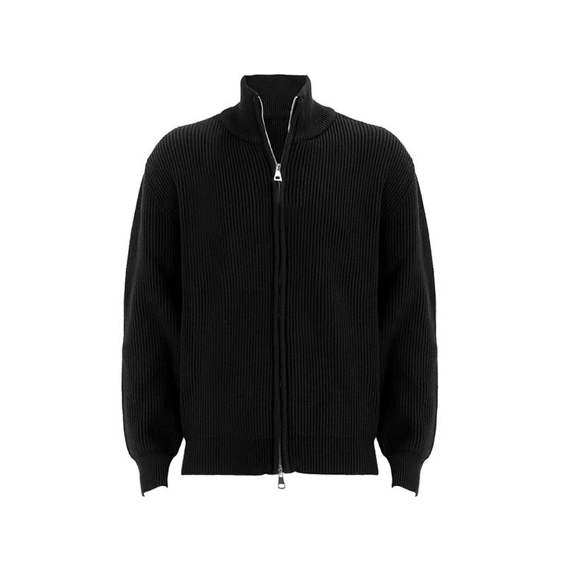 【CSMY】가을 겨울 양방향 지퍼 하이 칼라 헤비 가디건 재킷 남성 루즈 블랙 니트 스웨터 마랄라