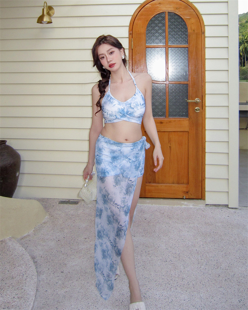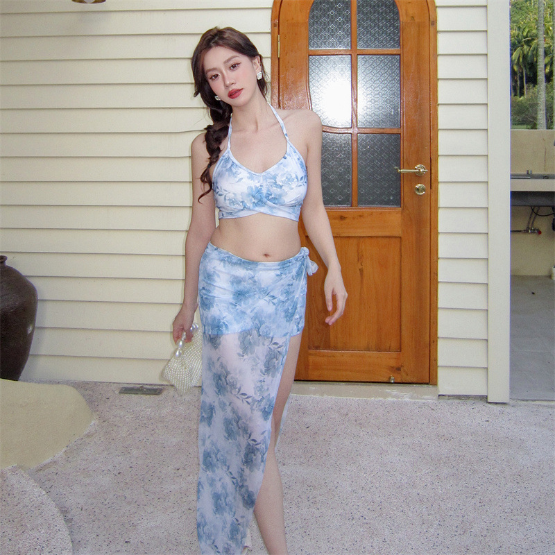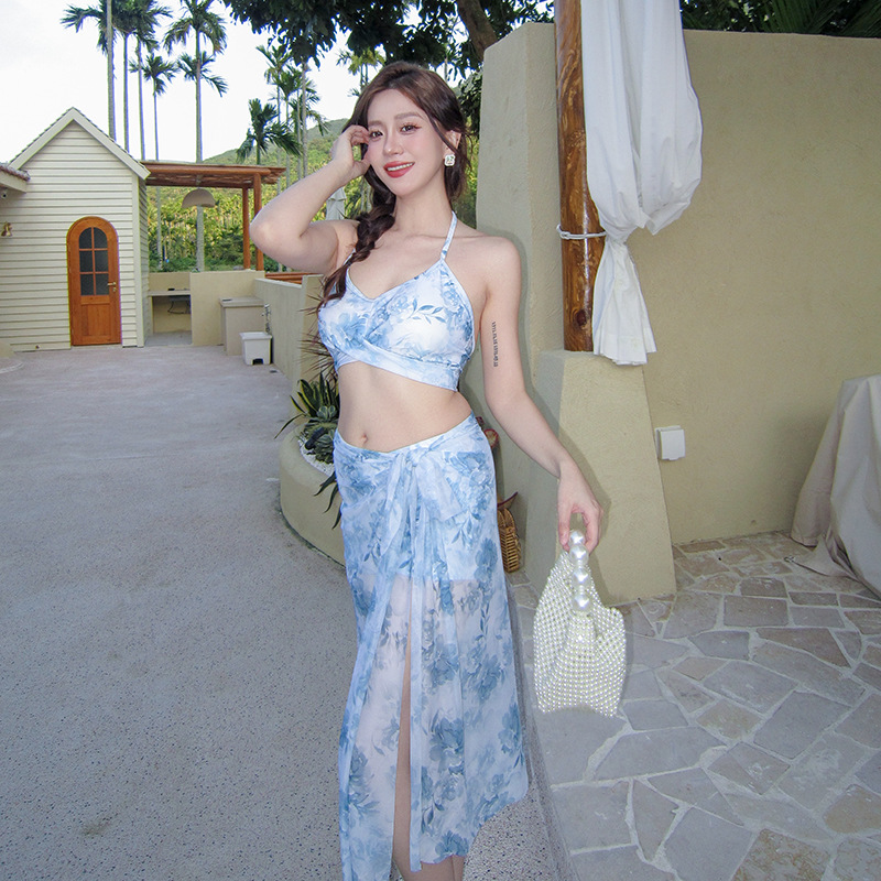 개인화 된 틈새 온천 수영복 여성 폭발성 슈퍼 페어리 롱 원피스 비키니 3 피스 세트 하이 엔드 해변 휴가