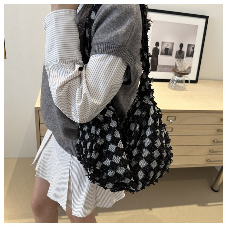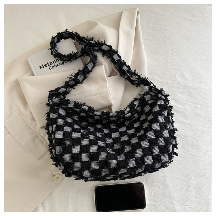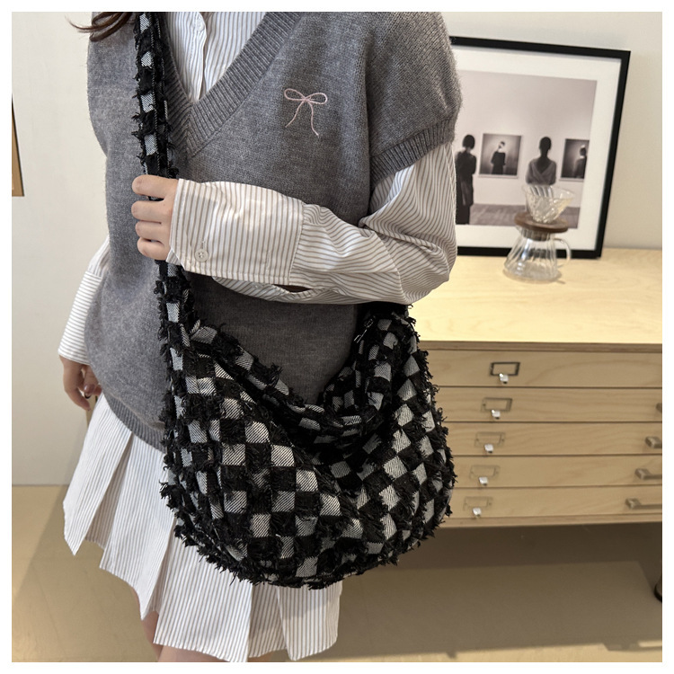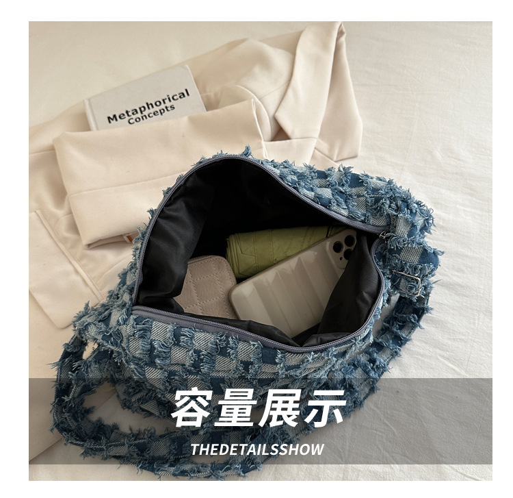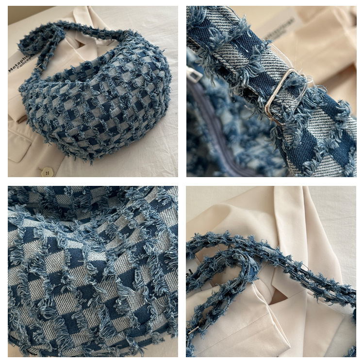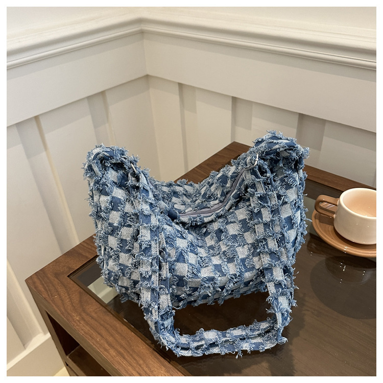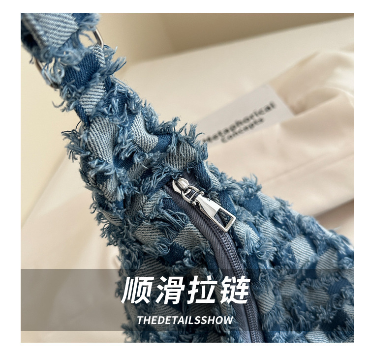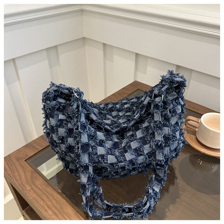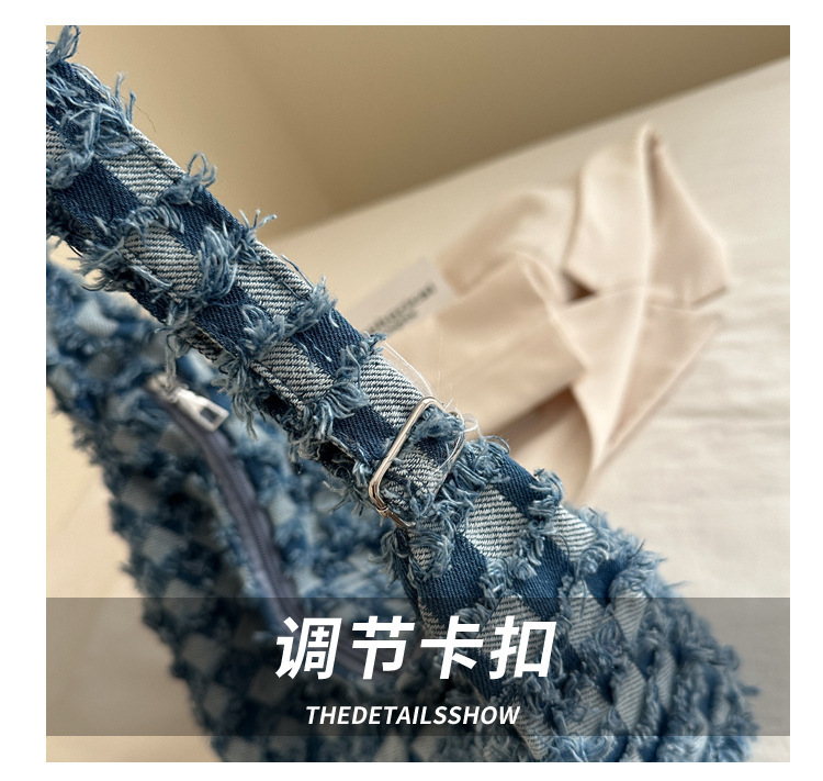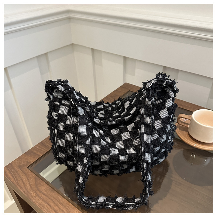 2024个性新款休闲时尚大容量牛仔帆布简约格子单肩腋下斜挎腋下包