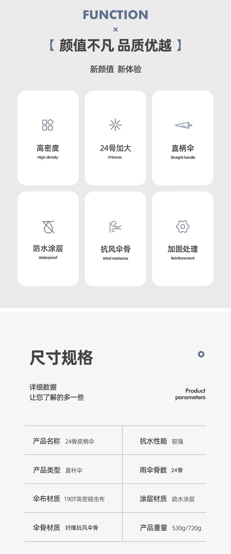 • 미스티 그레이 [원피스 버튼 + 풀 파이버 미디엄 로드] 우산 커버 포함
