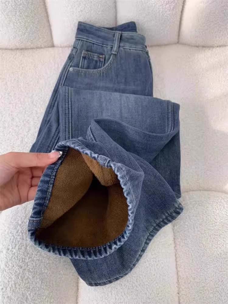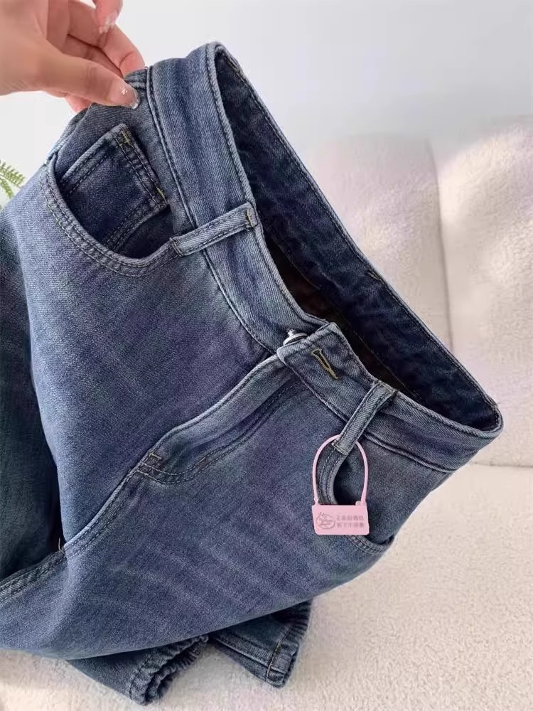 기모 두꺼운 좁은 직선 청바지 여자 겨울 통통녀 높은 허리 슬리밍 작은 모든 경기 폭발성 넓은 다리 바지스토어 가기