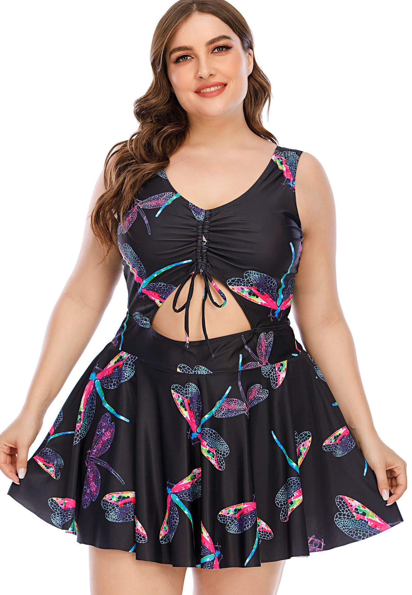 원래 국경 멀티 플라워 유럽과 미국의 대외 무역 여성 플러스 사이즈 원피스 수영복 아마존 이베이 뚱뚱한 여자 수영복