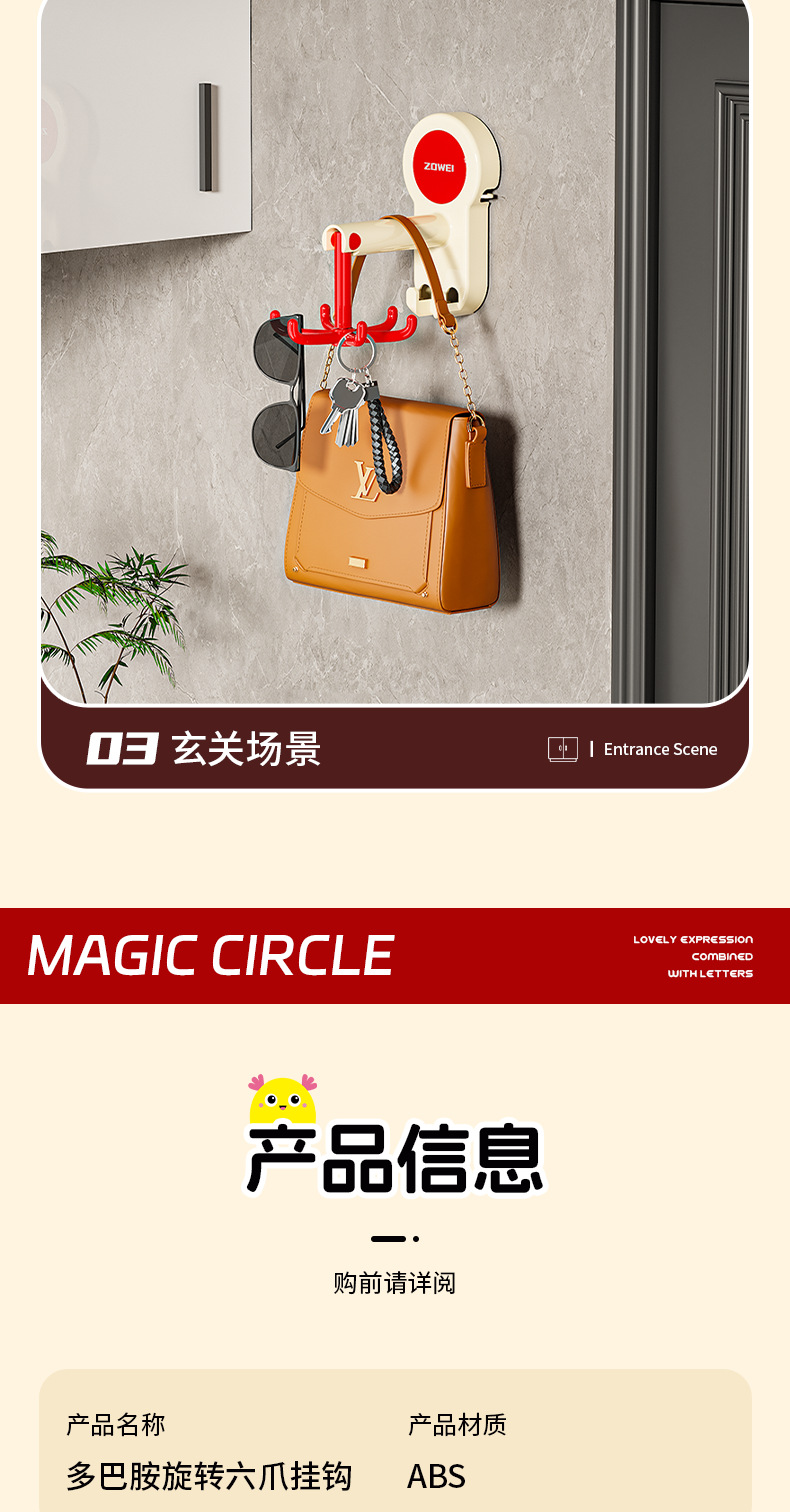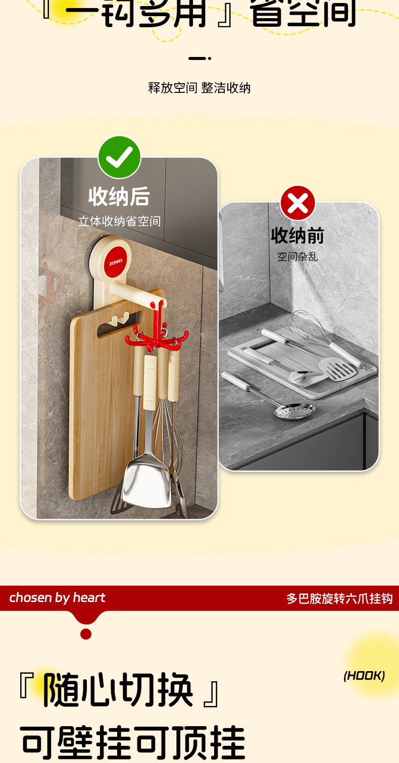 흡입 컵 6 발톱 후크 주방 회전 비 펀치 가정용 트리스 벽 장착 스푼 보관 랙스토어 가기