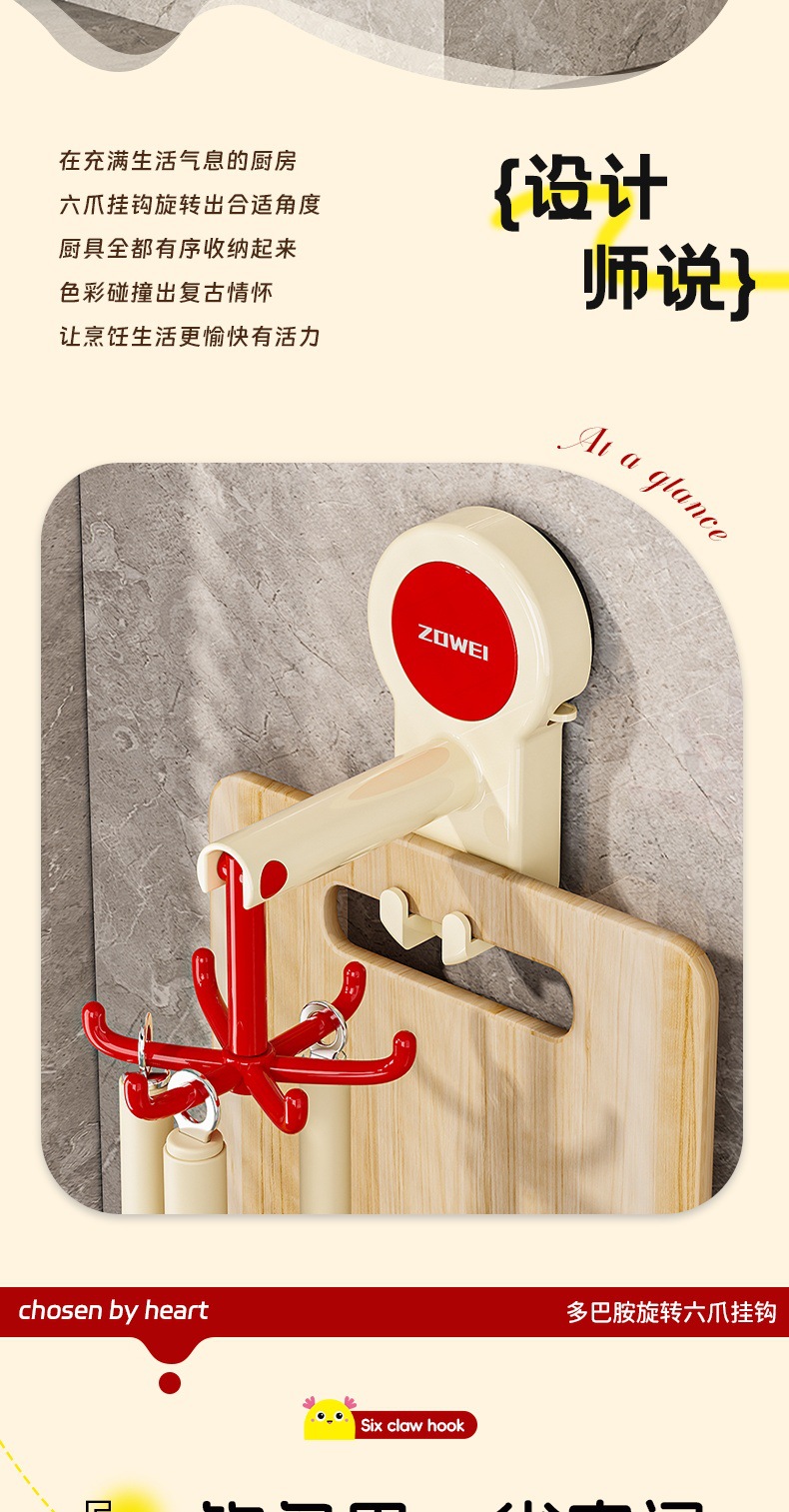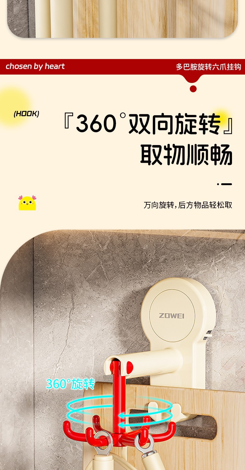 흡입 컵 6 발톱 후크 주방 회전 비 펀치 가정용 트리스 벽 장착 스푼 보관 랙