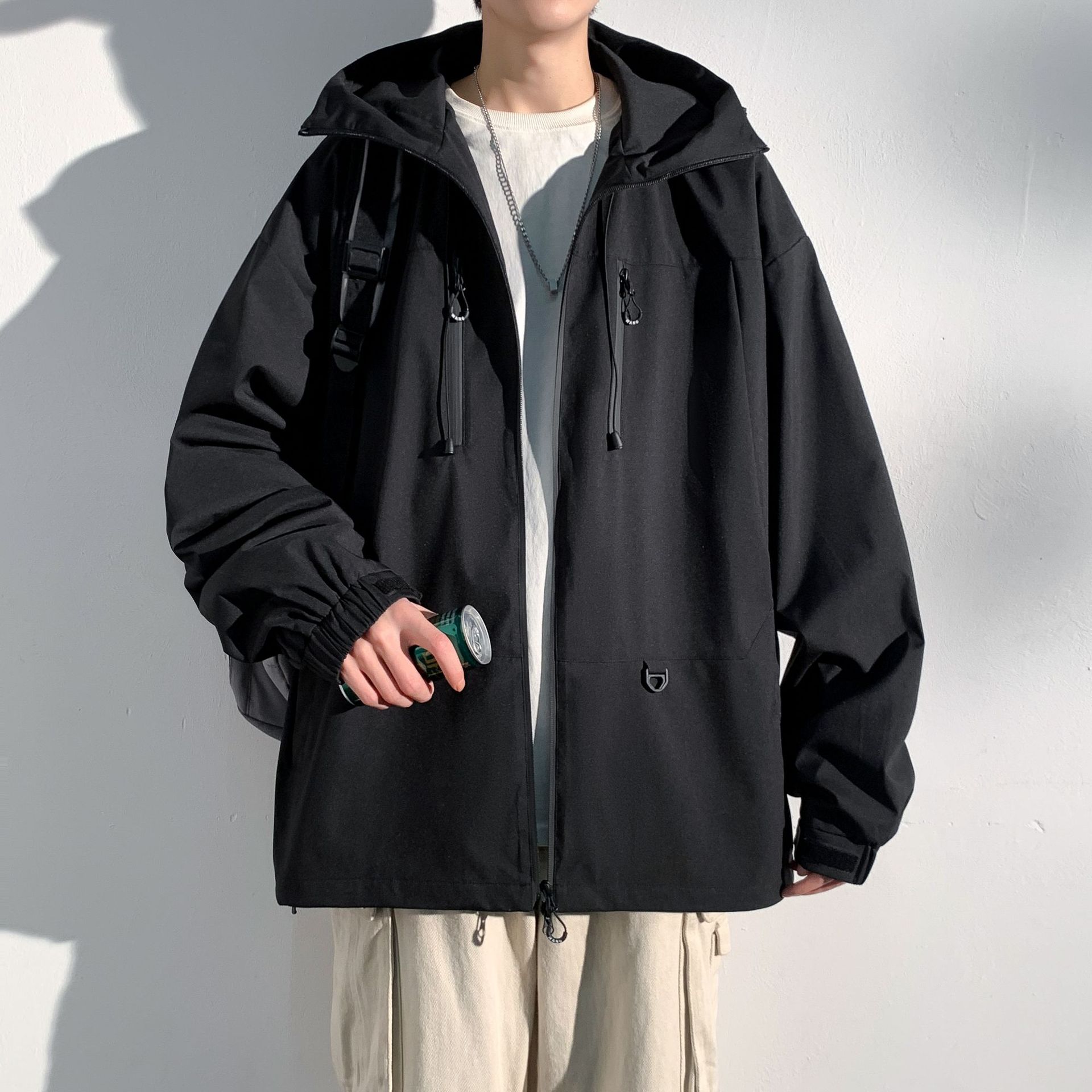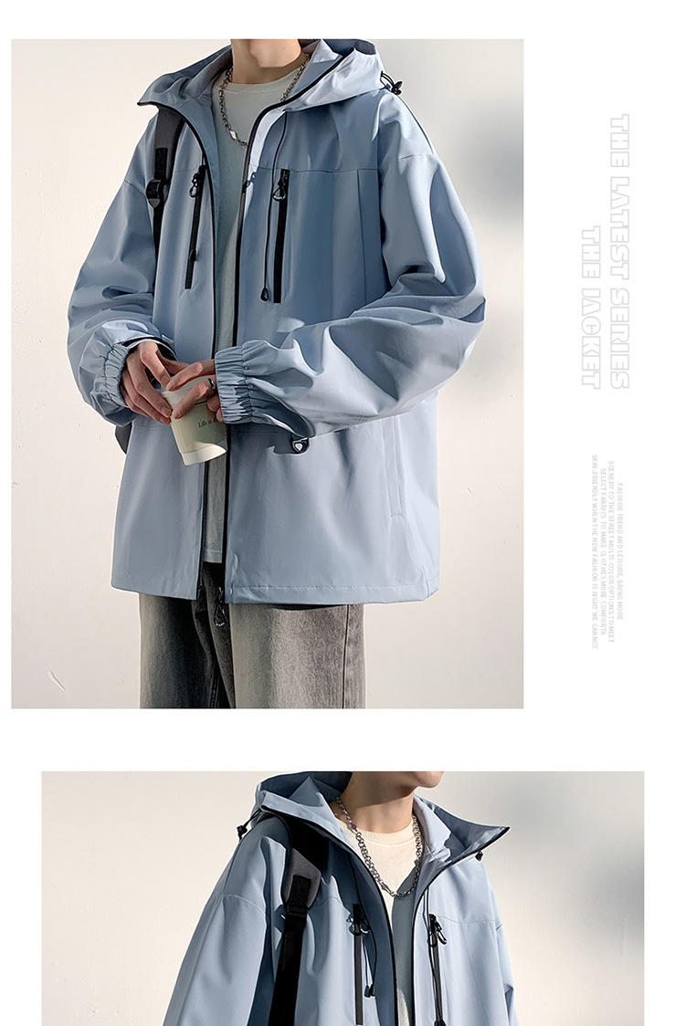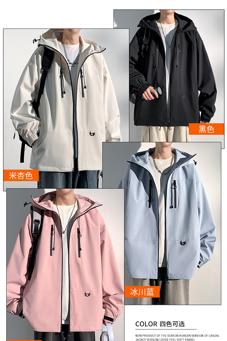 대외 무역 야외 남성 러시 포워드 의류 트렌디 브랜드 캐주얼 남성 자켓 남성 느슨한 방풍 후드 커플의 등산 세트스토어 가기