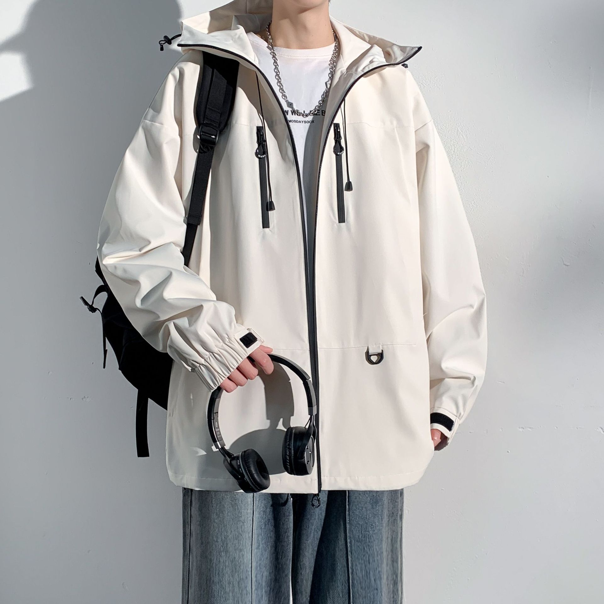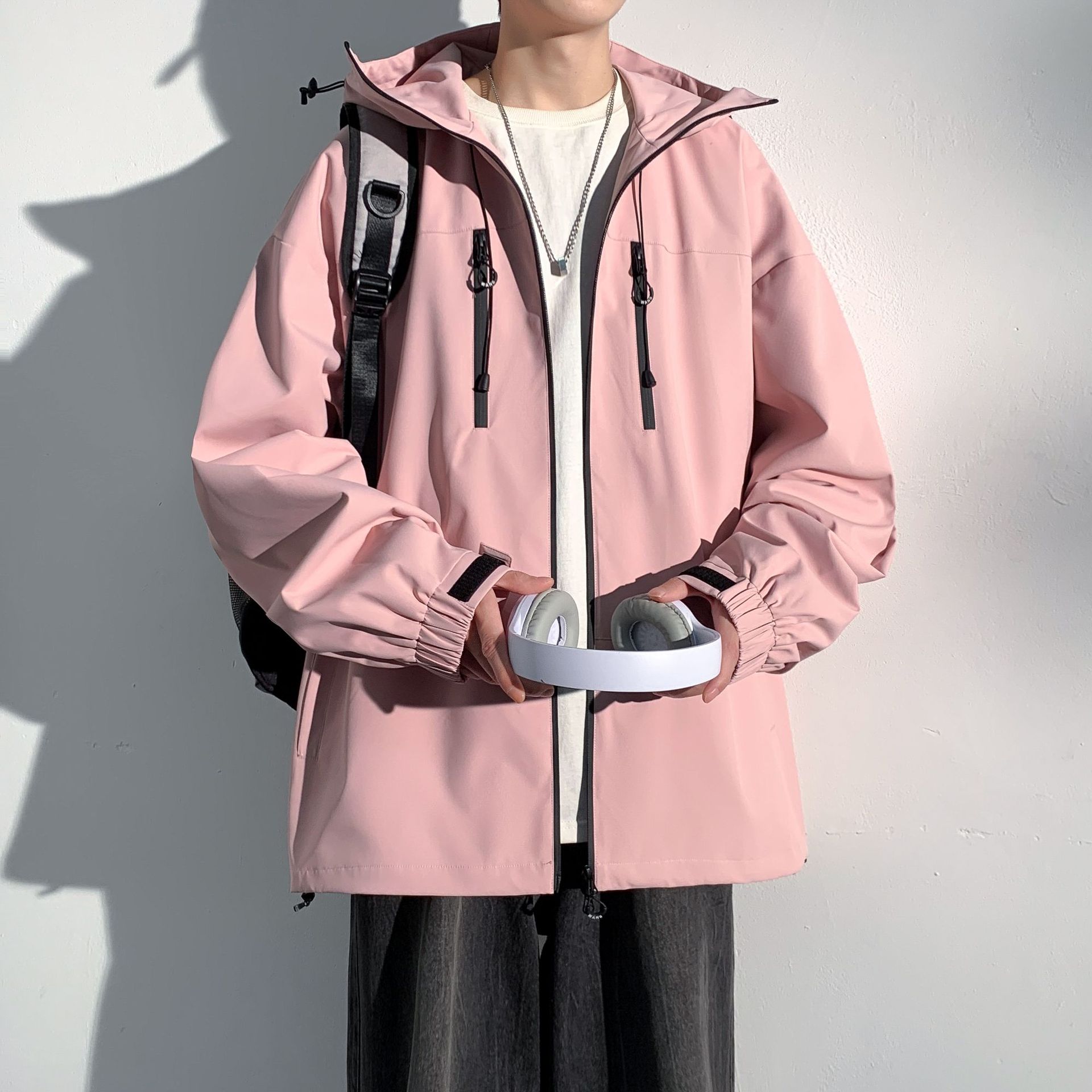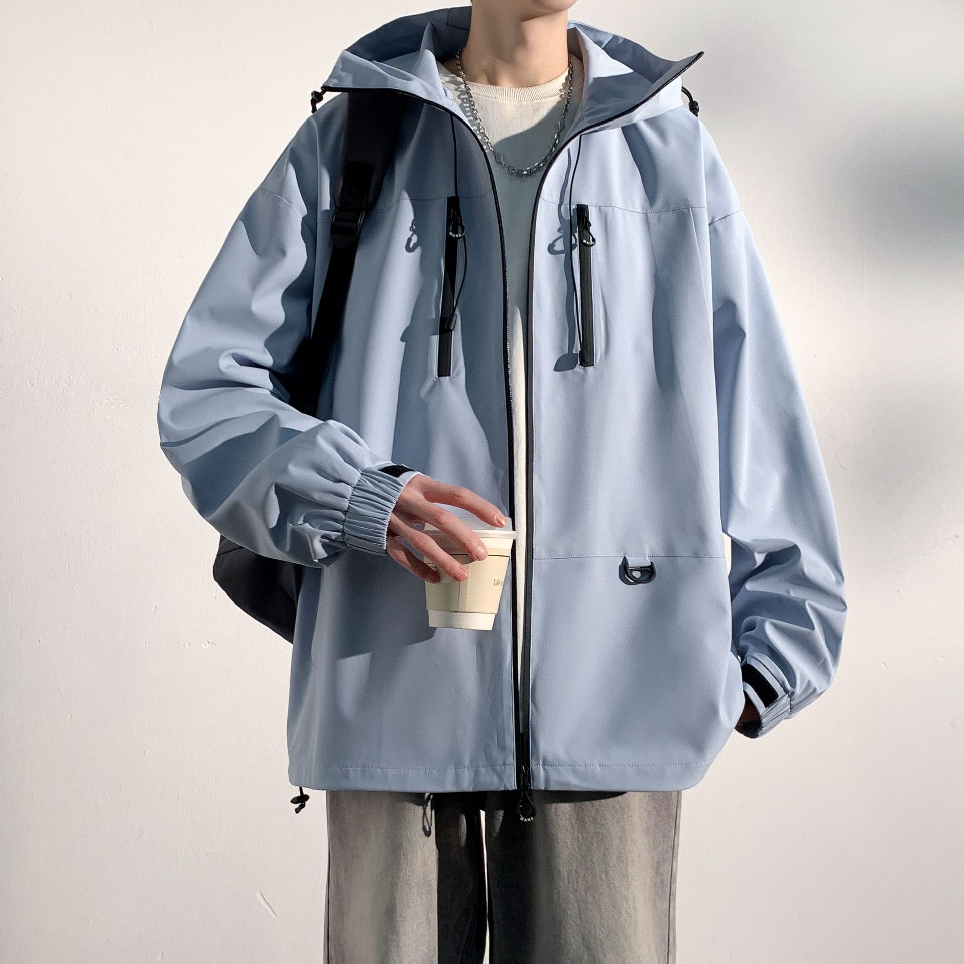 대외 무역 야외 남성 러시 포워드 의류 트렌디 브랜드 캐주얼 남성 자켓 남성 느슨한 방풍 후드 커플의 등산 세트스토어 가기