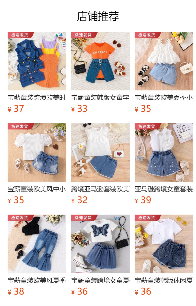 국경 간 대외 무역 아동복 유럽과 미국 여름 소녀 3 차원 큰 꽃 캐미솔 자수 데님 반바지 세트스토어 가기