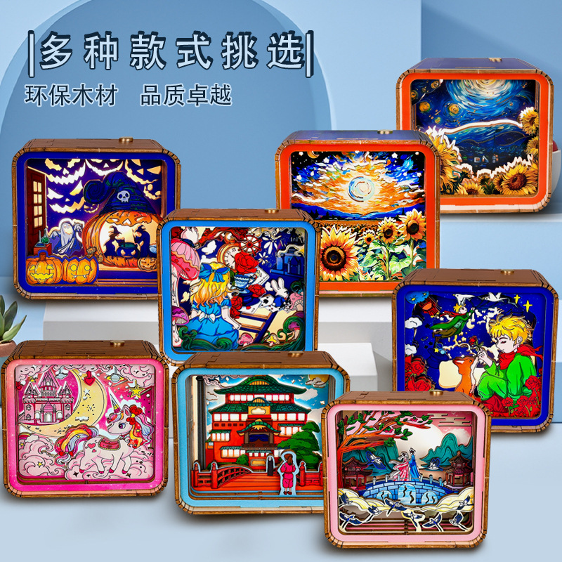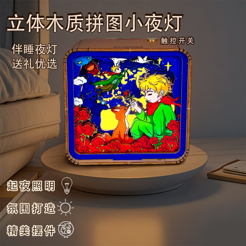 3D 나무 조각 램프 DIY 나무 국경 눈사람 밤 빛 장식품 스타 램프 연꽃 램프 작은 왕자 밤 빛 선물스토어 가기