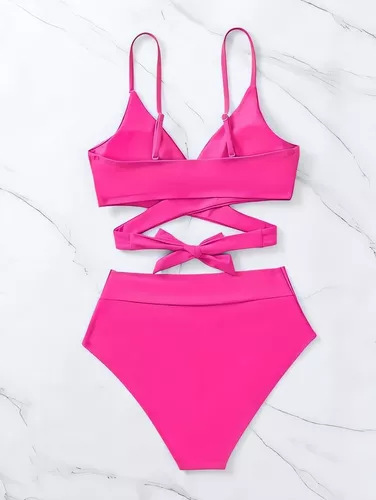 2025년 유럽 및 미국 해외 무역 신상 비키니 단색 끈 묶는 섹시 비키니 분리형 수영복 여성용스토어 가기
