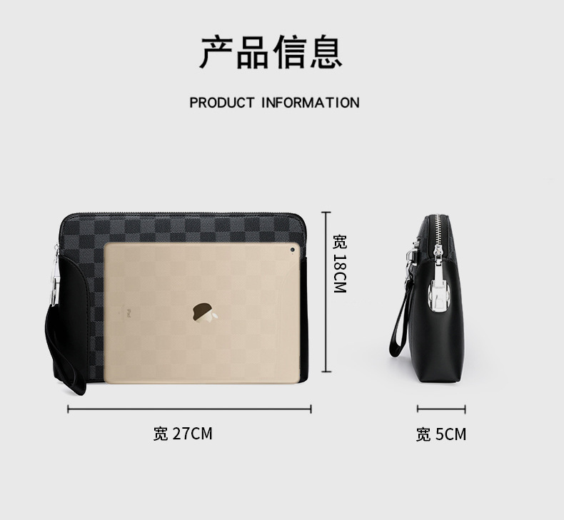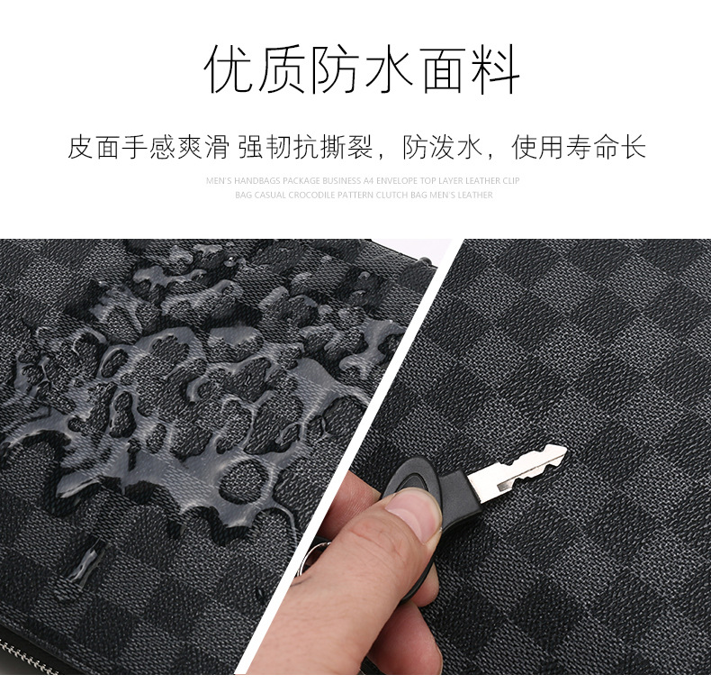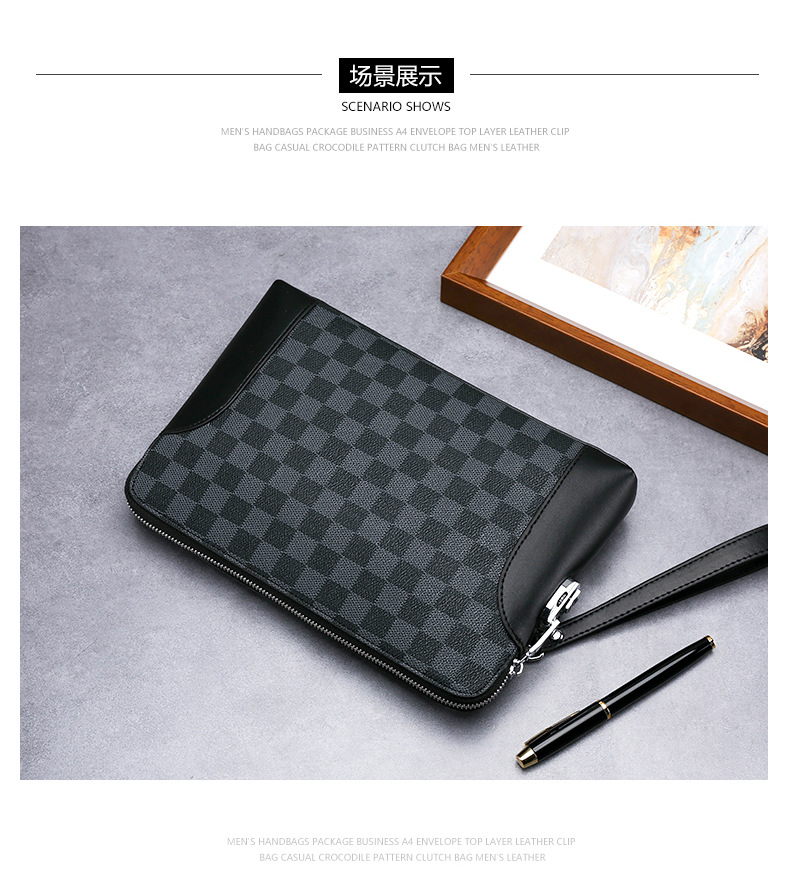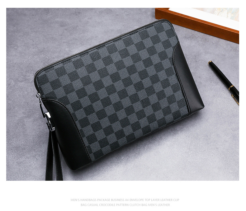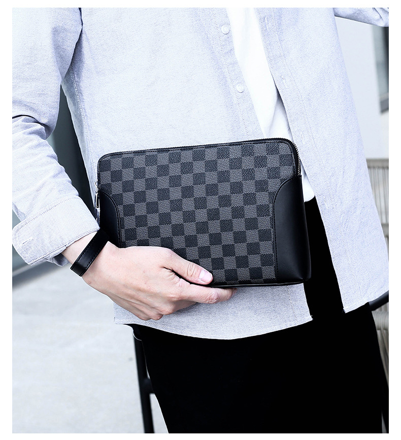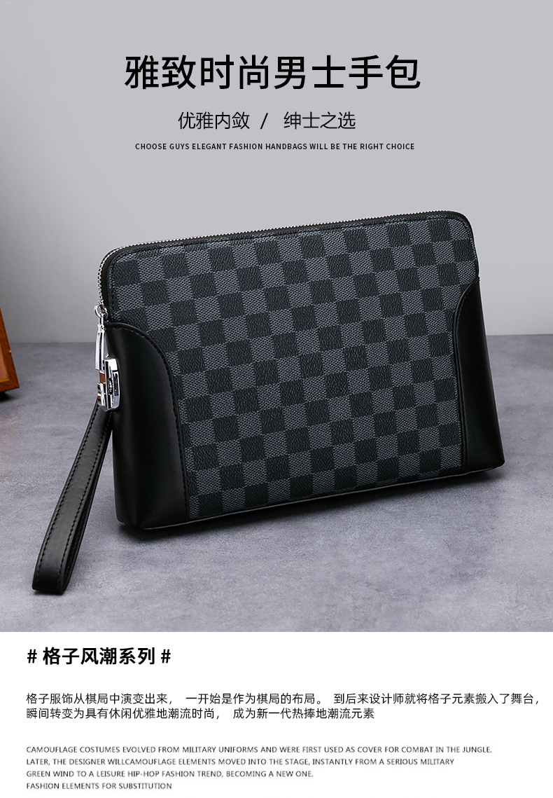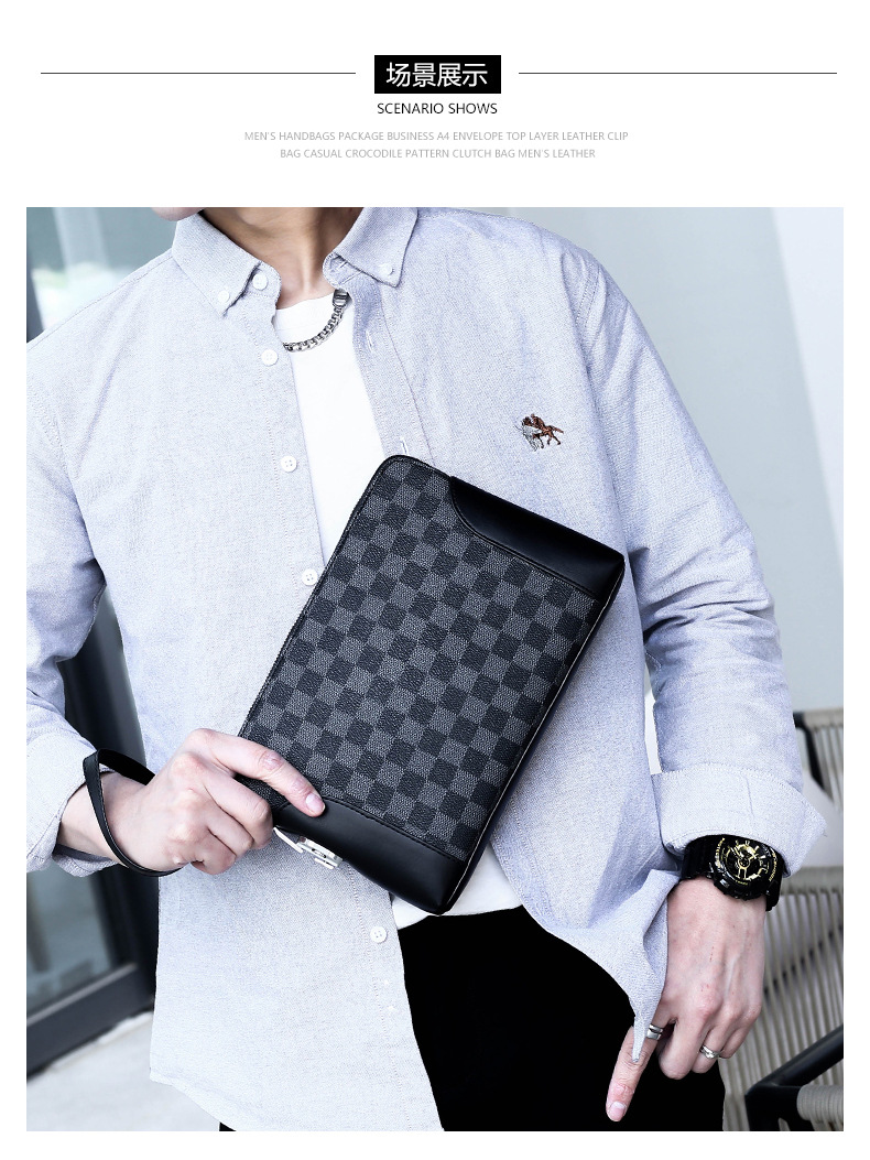 2023 새로운 남성 복고풍 체크 조합 잠금 클러치 백 인터넷 유명한 도난 방지 대용량 클러치 백 지원 로고스토어 가기