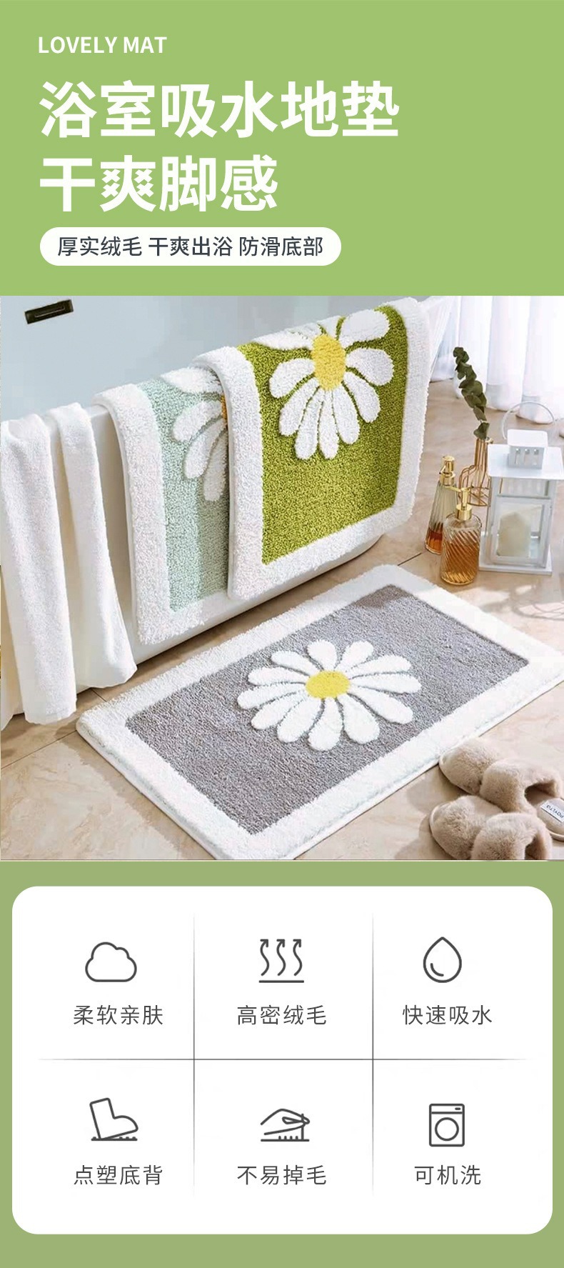 국경 간 Ins 스타일 데이지 모방 캐시미어 흡수성 바닥 매트 가정용 미끄럼 방지 소프트 매트 화장실 문 매트 재고스토어 가기