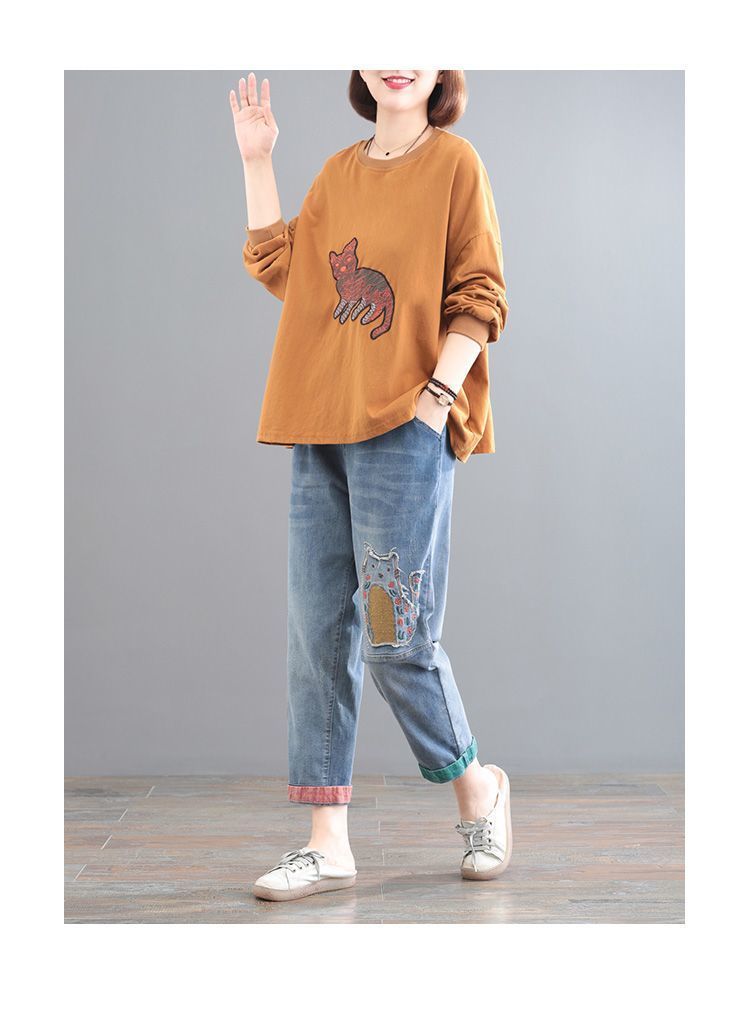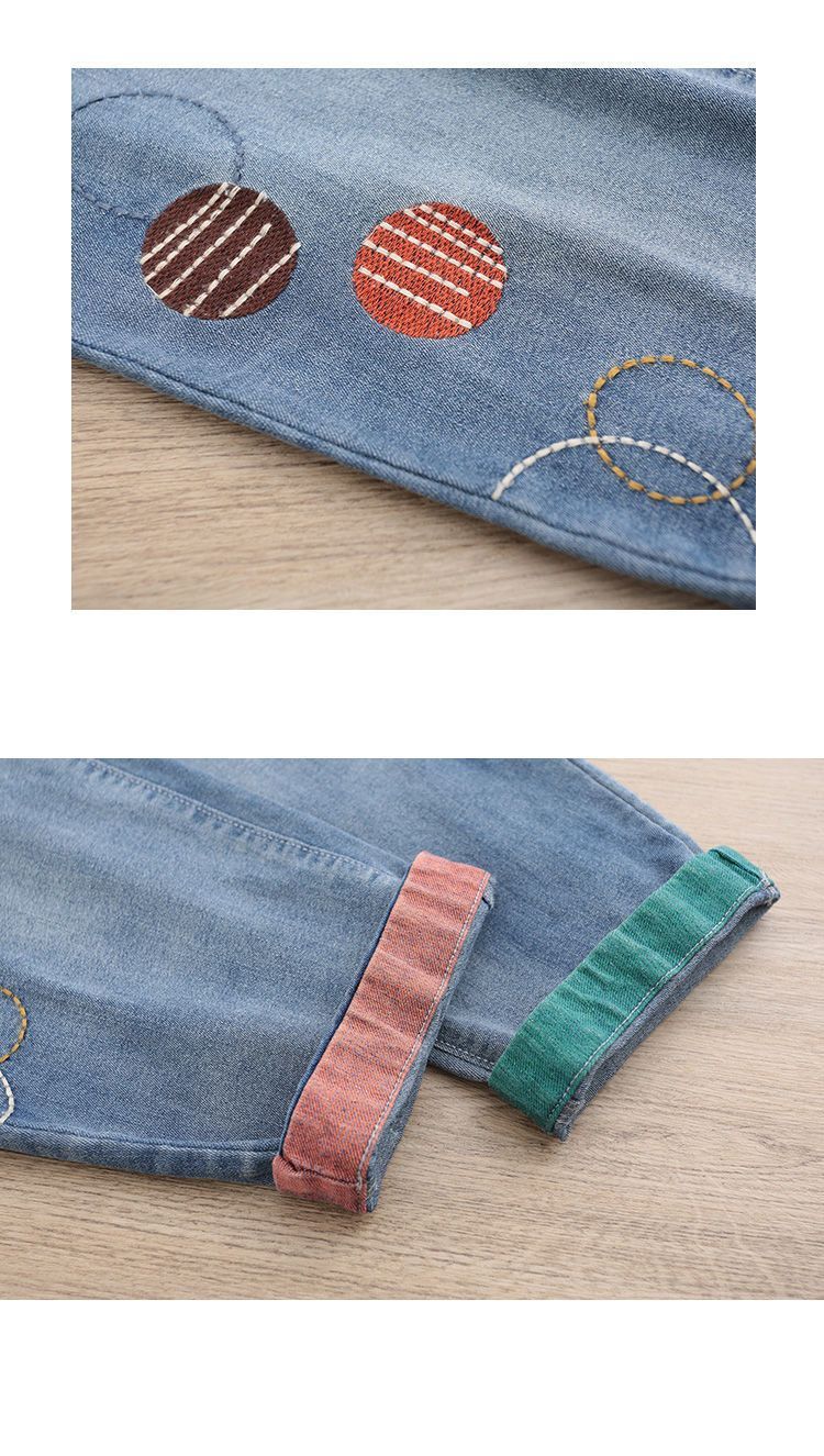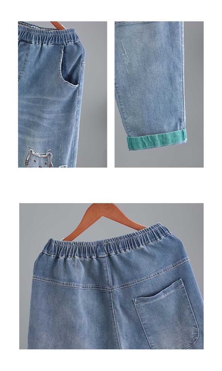 청바지 여성 2025 봄과 여름 새로운 한국 스타일 플러스 사이즈 만화 자수 페이스트 세련된 9 점 하렘 바지스토어 가기