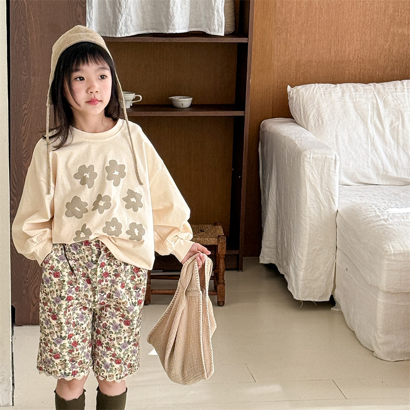 2026 아동복 봄옷 어린이 한국 스타일 봄 여름 워싱 코튼 반바지 여아용 반바지 아동 바지 6050